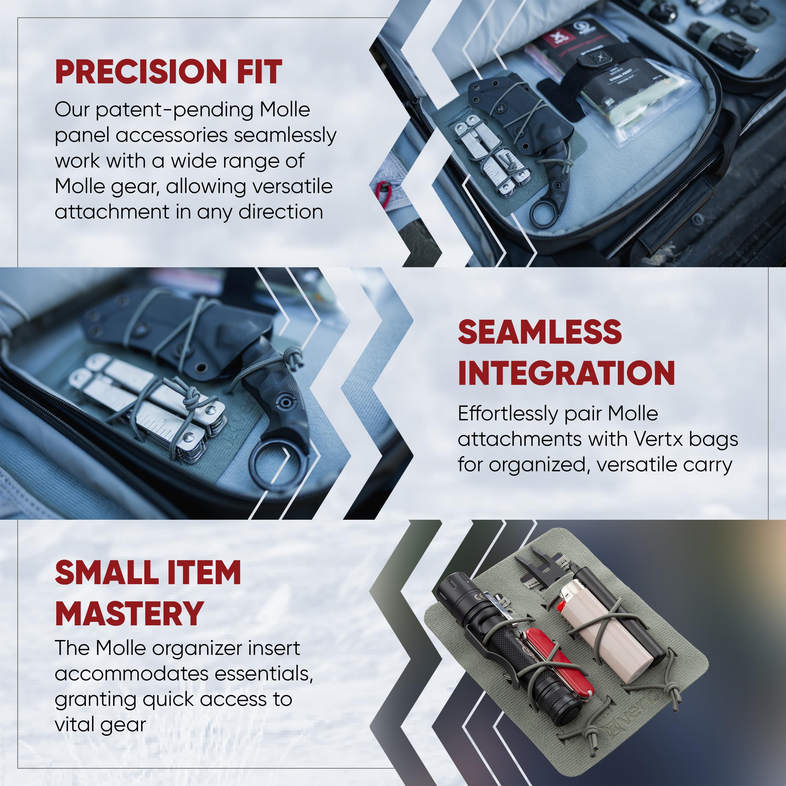 SEAMLESS INTEGRATION – Pair the compatible Molle attachment effortlessly with any Vertx bag or pack, transforming your everyday carry into a highly organized, versatile solution.