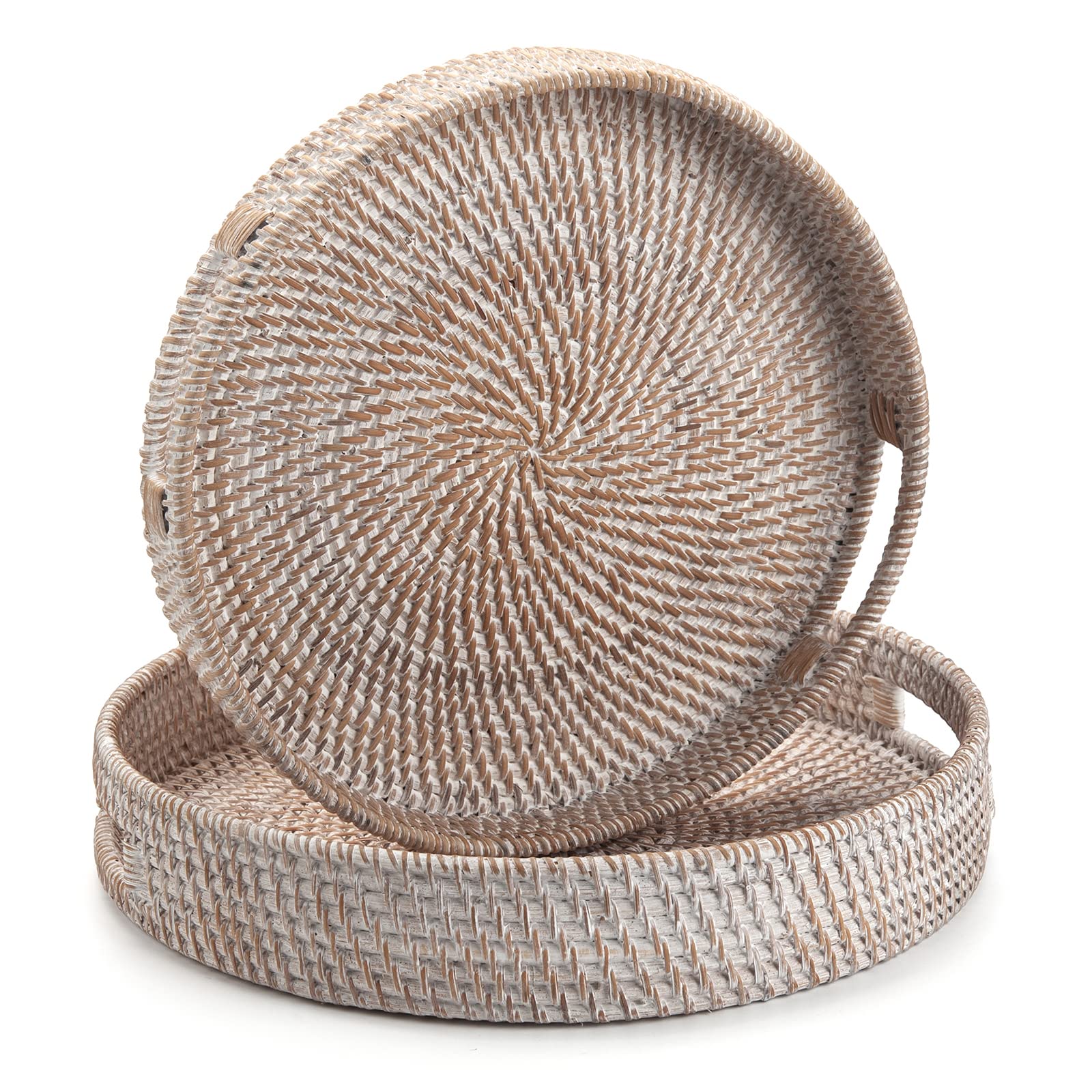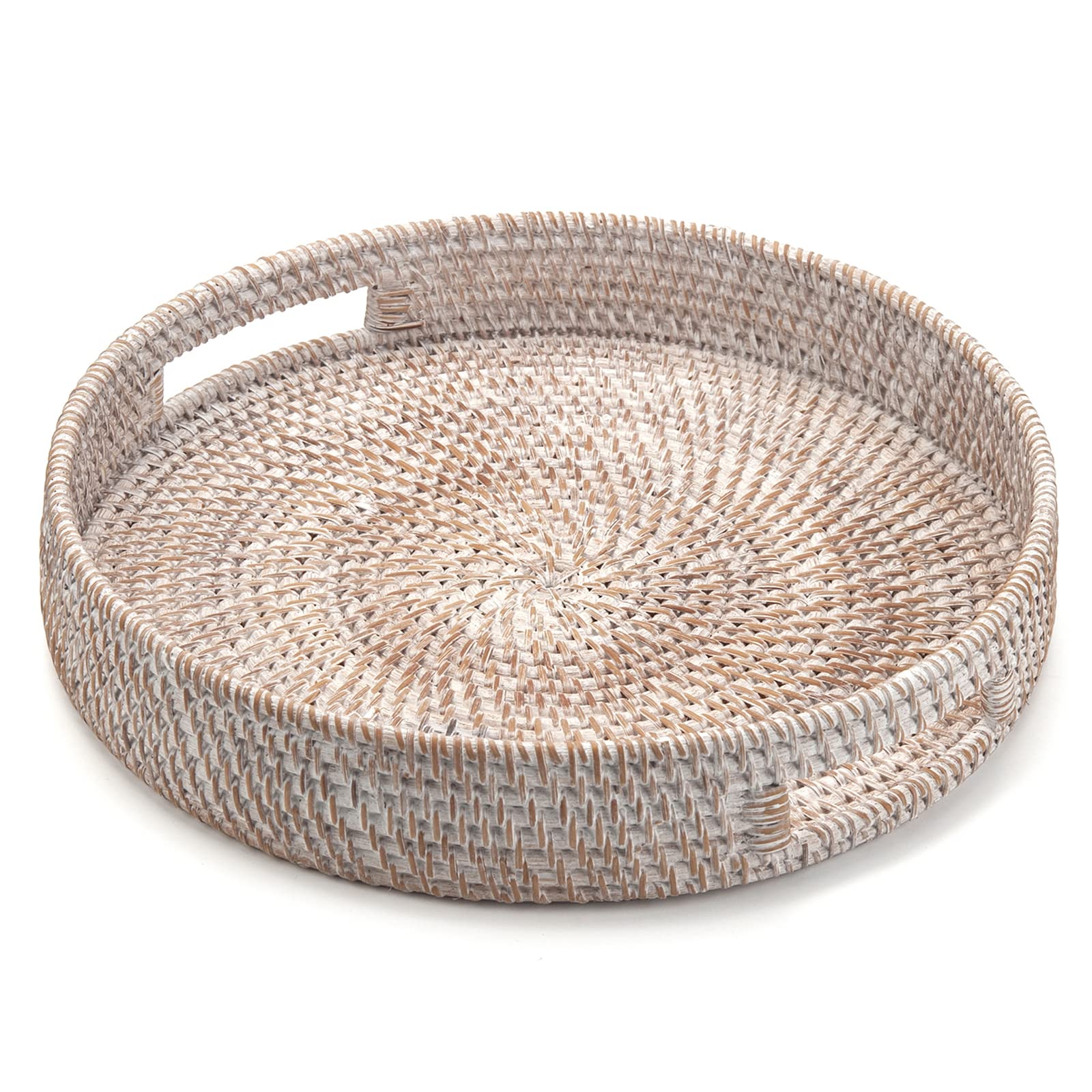 The round tray is designed with natural rustic color, simple but elegant design for decoration, fits most home, kitchen, farmhouse, tea room or coffee room