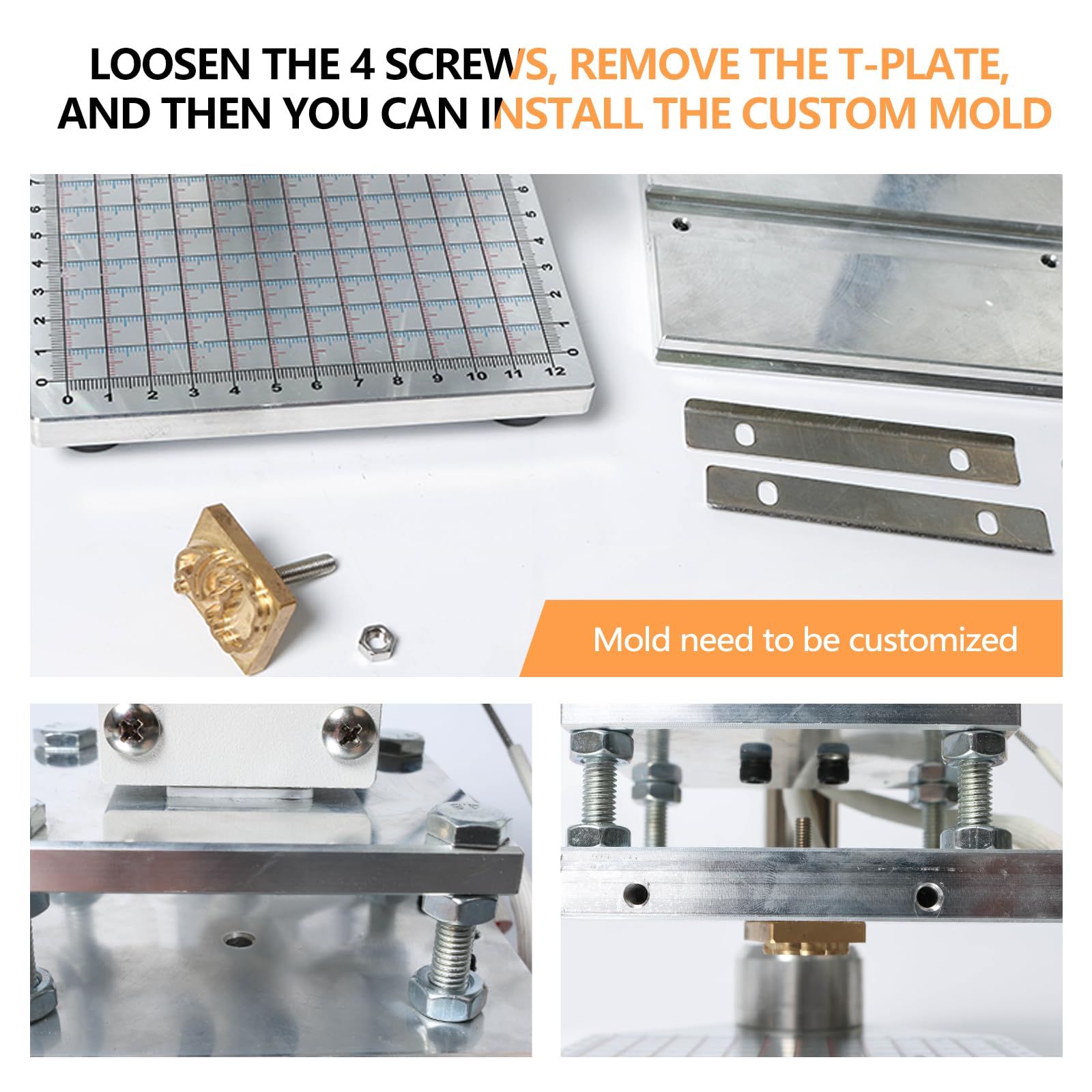 Dual-use upgrade version:The heating work ironing T board can be disassembled,if you take it out,you can use the customized mold,if not,you can use copper letters mold with T-slot