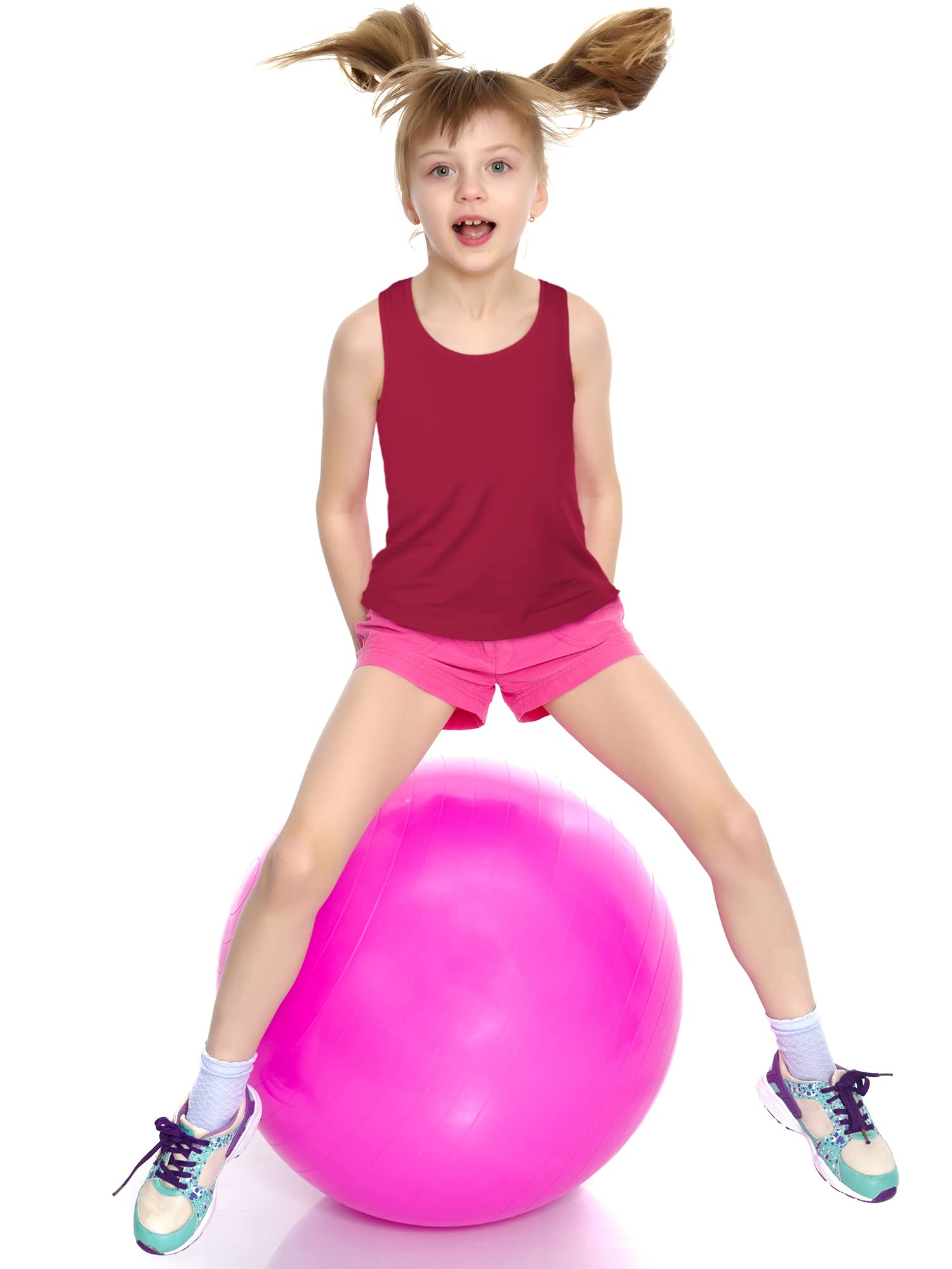 Racerback Design: The girls dance tank top boasts a scoop neck and sleek racerback design, ensuring easy movement and a comfortable fit. the sleeveless and chic T-shaped back allows for unrestricted motion during sports, keeping girls cool and dry