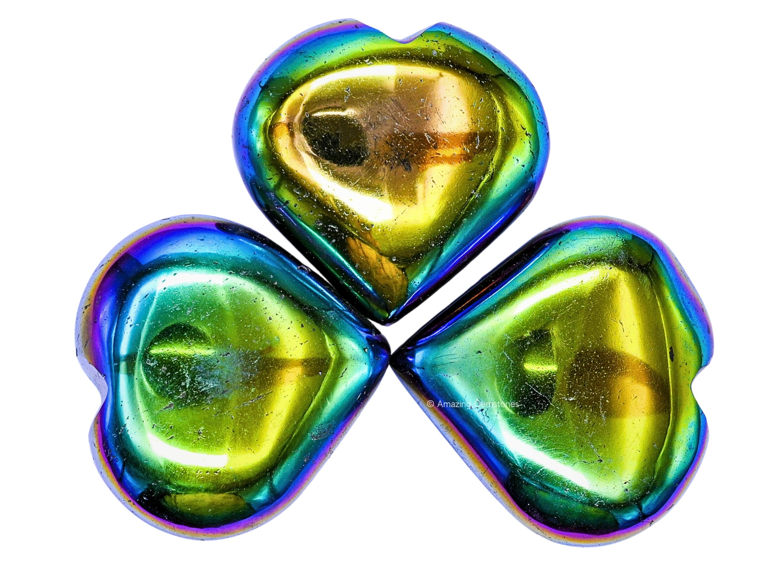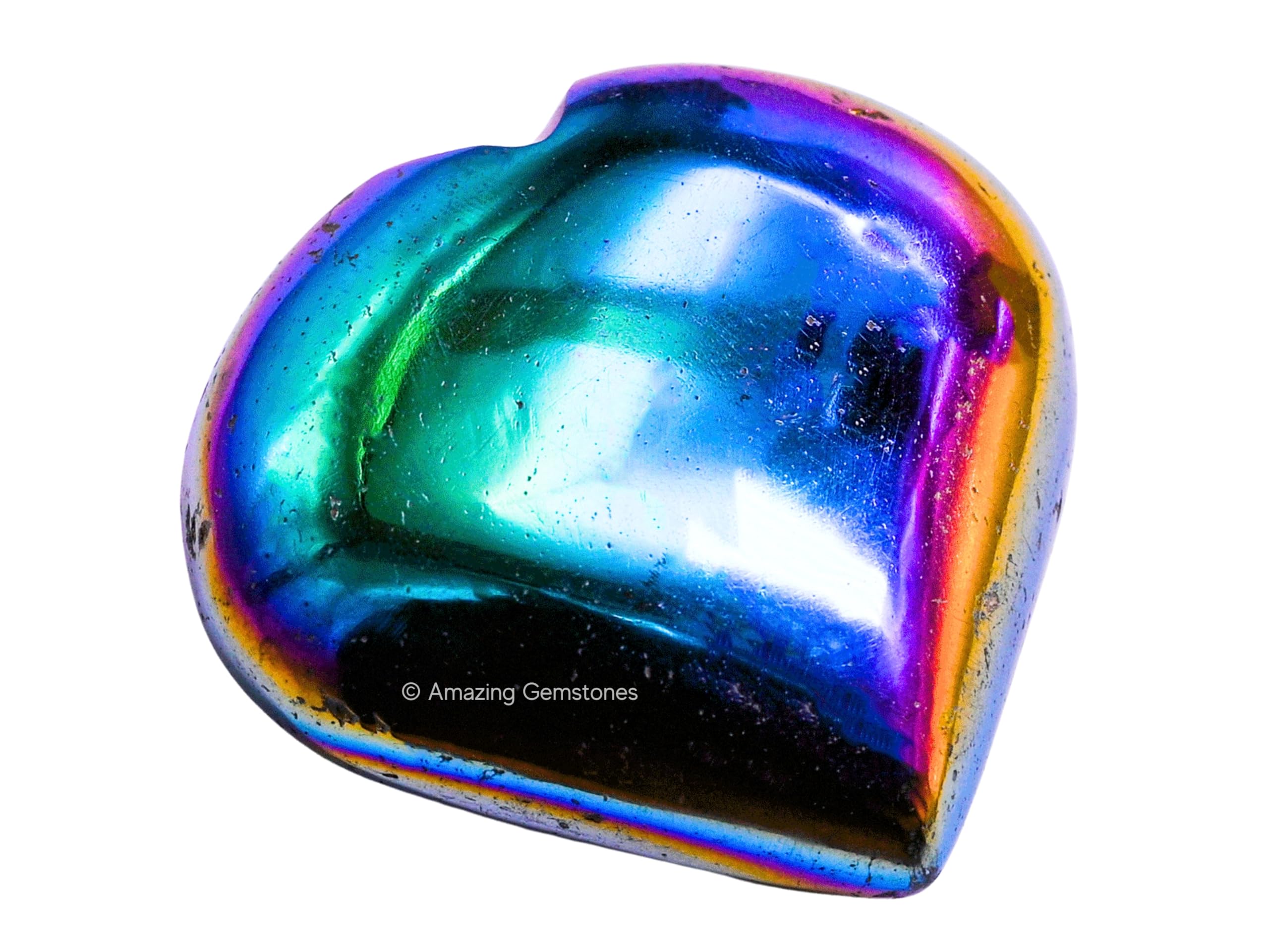 Titanium Aura Quartz Crystal Heart Palm Worry Stones are polished heart shaped stones that can be used for Back, Neck, Face and Feet Massage therapy, Chakra Balancing, Reiki Healing, Crystal Grid Meditation and many other esoteric healing practices.