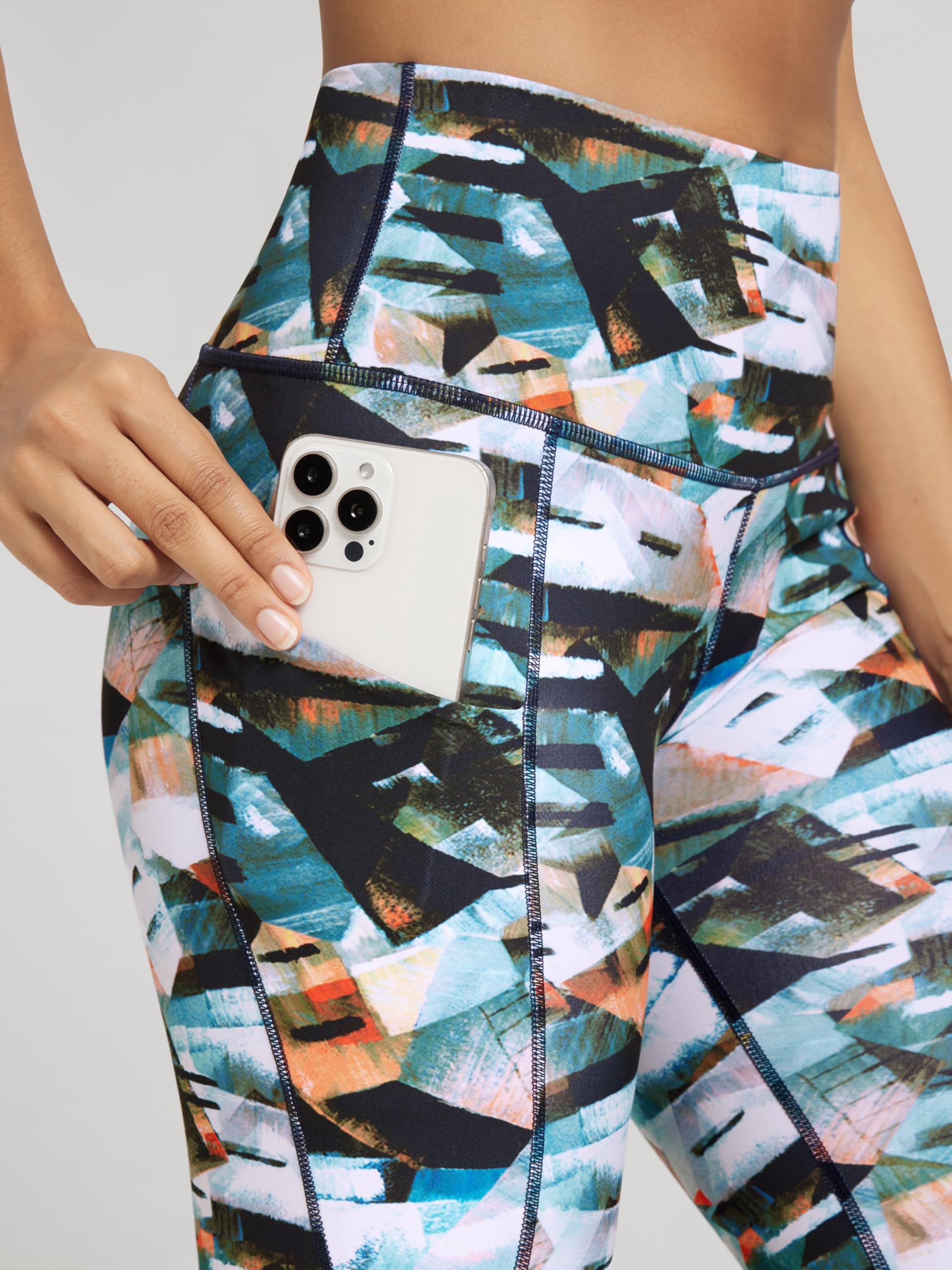 Side Pockets: 2 large side pockets, deep enough to fit a smart phone and keys and it doesn't move around, no more worry about your essentials while workout.