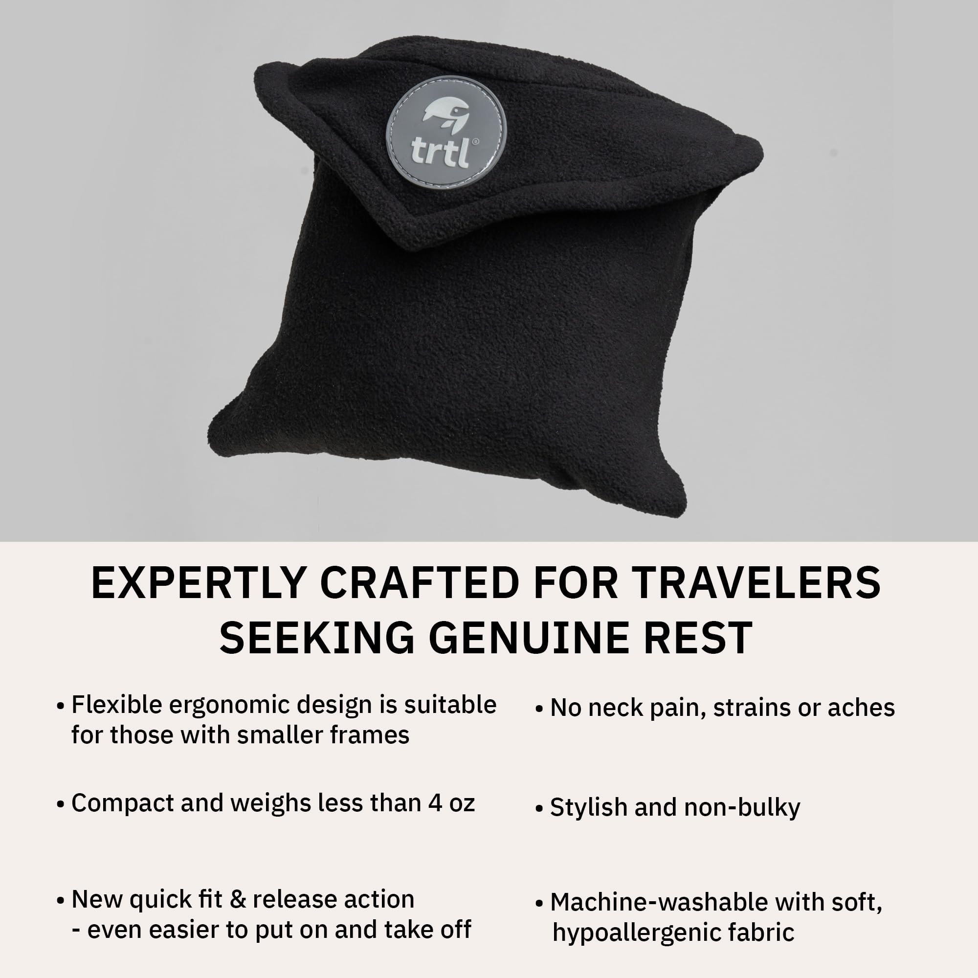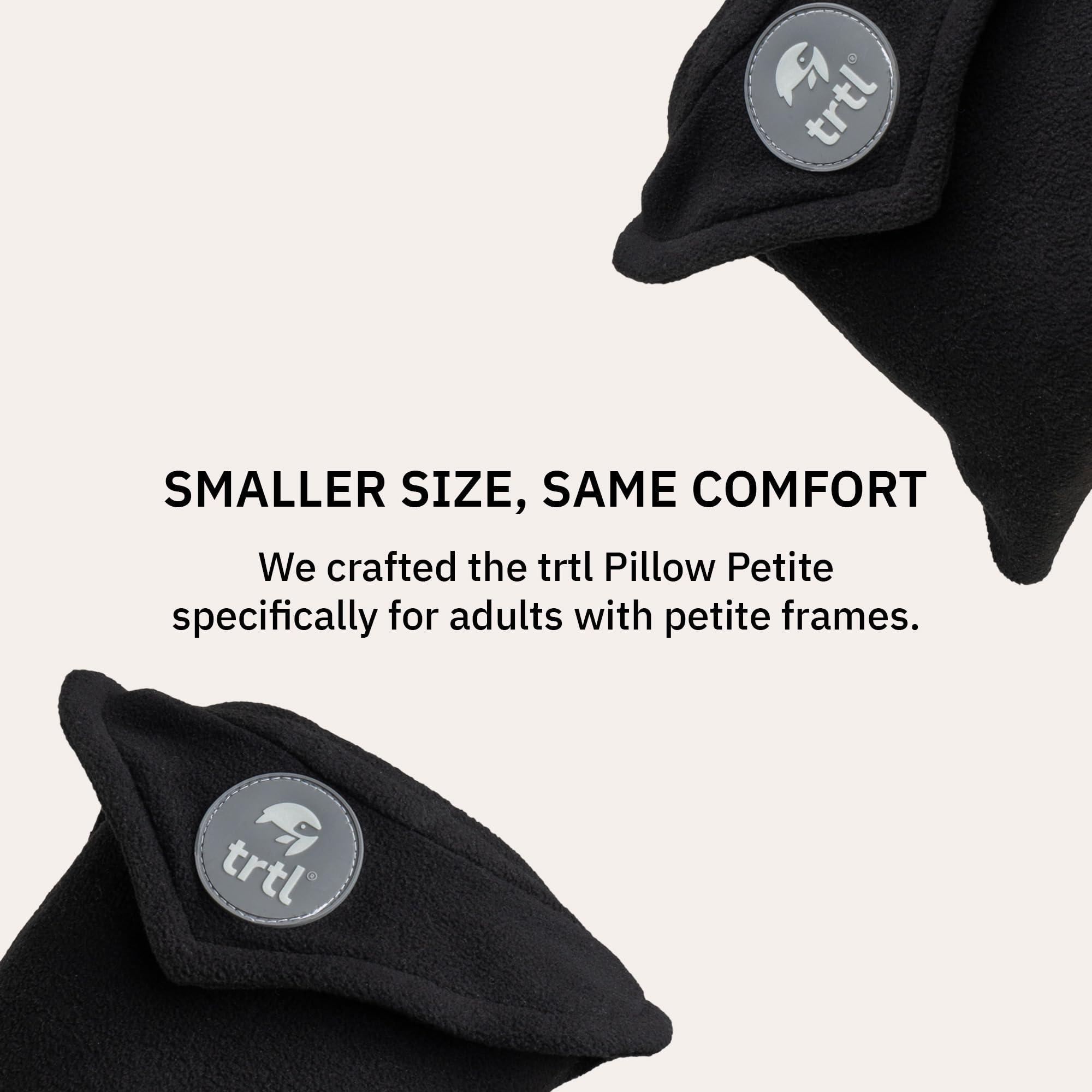 The Ultimate Compact Travel Pillow: The trtl Pillow Petite is a solution for travelers who find traditional travel pillows too bulky! Our travel neck pillow offers the same scientifically proven neck support you love, now in a more streamlined size that's perfect for smaller frames or anyone who finds the trtl Travel Pillow Original too oversized for their liking.