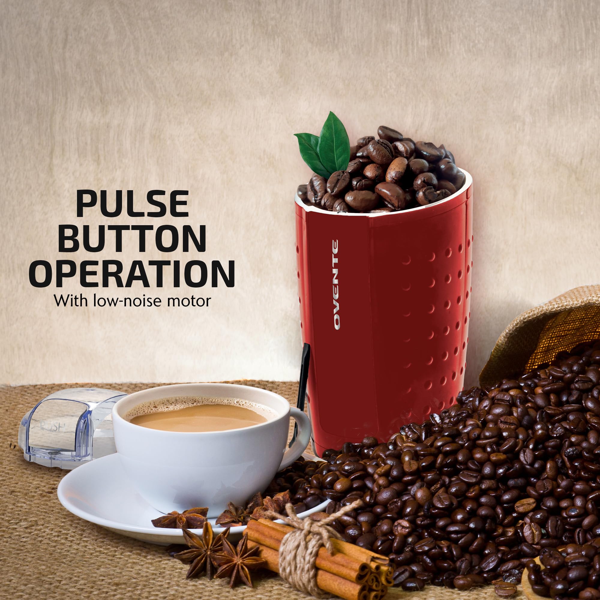 Use the OVENTE Electric Coffee Grinder CG225 Series for all your grinding needs. Perfect for coffee, espresso, nuts, and spices, it brings out the luscious flavors and aromas from coffee, tea leaves, herbs, spices, nuts, grains, and more. Powered by a robust 150-Watt motor, this grinder quickly pulverizes whole coffee beans into a fine powder in seconds. The high-quality stainless steel blades ensure a smooth and even grind every time. With its stainless steel grinding bowl (hopper) that holds up to 2.5oz (70g) of ground products, you can prepare enough for your daily brew or recipes. It’s simple and intuitive to use, whether you're new to whole bean coffee grinding or have been grinding your own beans for years. Just place the lid on the grinder, press the button to grind and release to stop. Designed with an ergonomic oval body, it provides a comfortable grip, making accidental slips a thing of the past. Plus, the built-in cord storage keeps the cord neatly tucked away when not in use. The OVENTE Electric Coffee Grinder CG225 Series is the perfect accessory for any coffee aficionado.