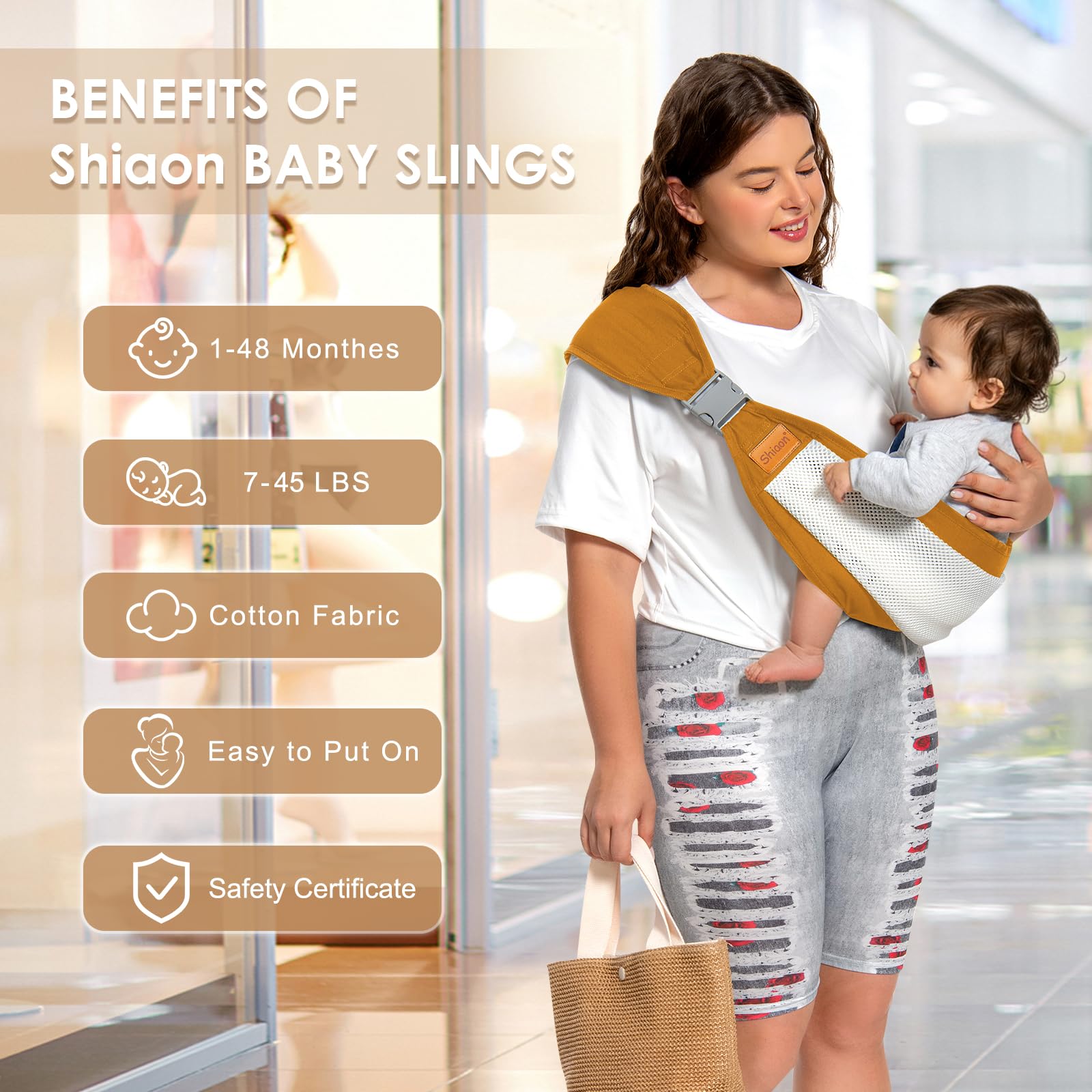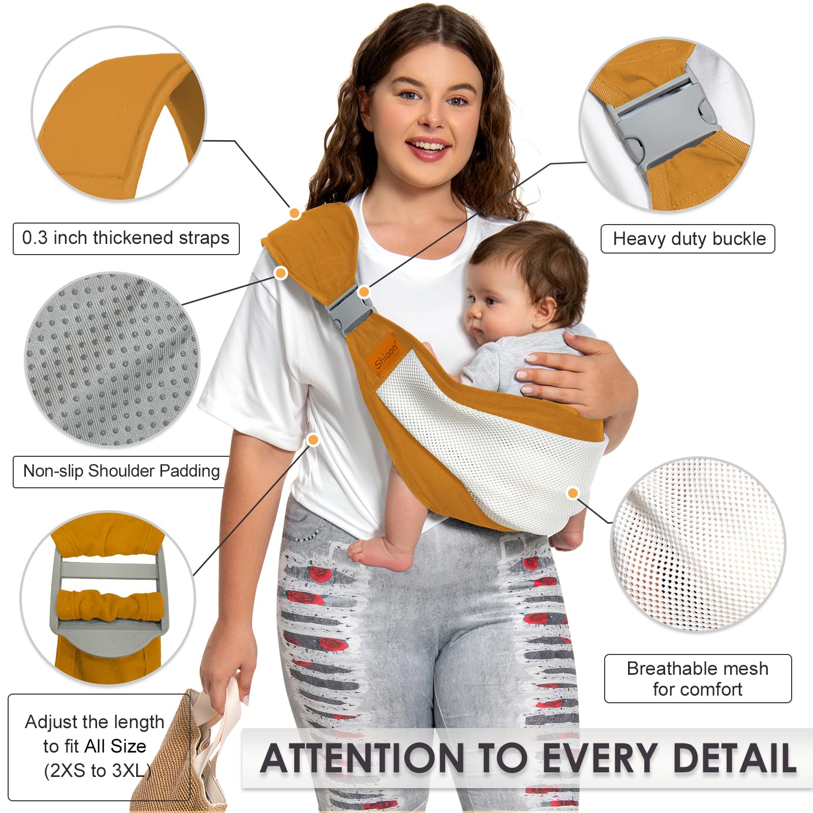 【1 - 48 Month of Age】 Baby sling carrier has adjustable function for height, You can adjust the length of shoulder straps according to your baby's different growth stages. Suitable for children 7 – 45lbs. The shoulder has 0.3 inch padding for added comfort.