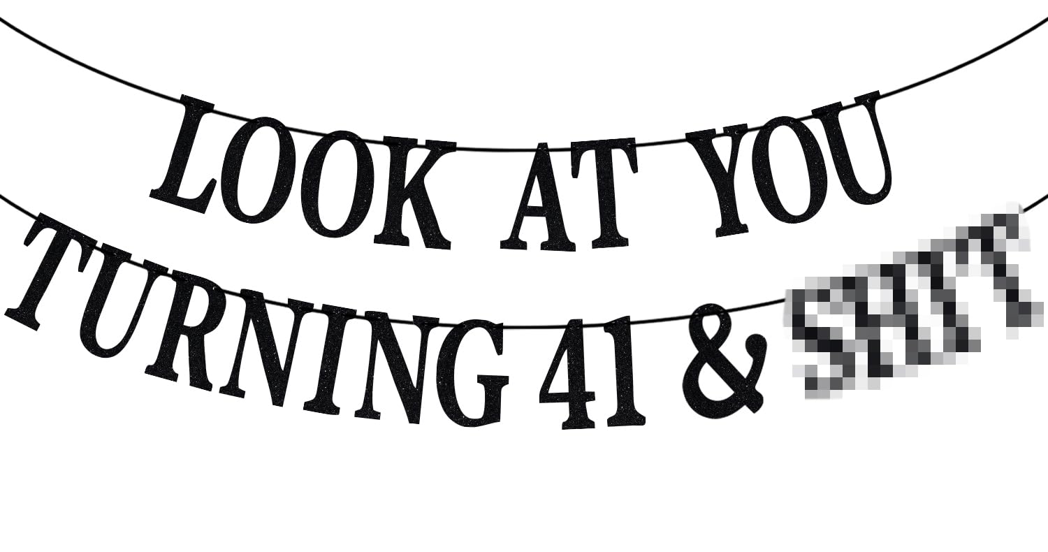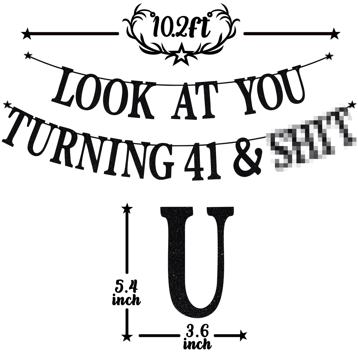 Received included: Letter cards spelling the phrase "Look at You Turning 41 & Sh*t". Awesome decorations: It is very suitable for the 41st Birthday party. Special party decorations can add an enjoyable and active atmosphere to these scenes, leaving a happy and unforgettable memory. High quality: Banners are made of glitter premium cardpaper. They are rigid and reusable. Easy to DIY: The card and the rope are separate, you only need to spend a little time to assemble. Choose us and believe us: We support the concept of customer first and product first. If the quality or damage occurs during transportation, we will solve it.