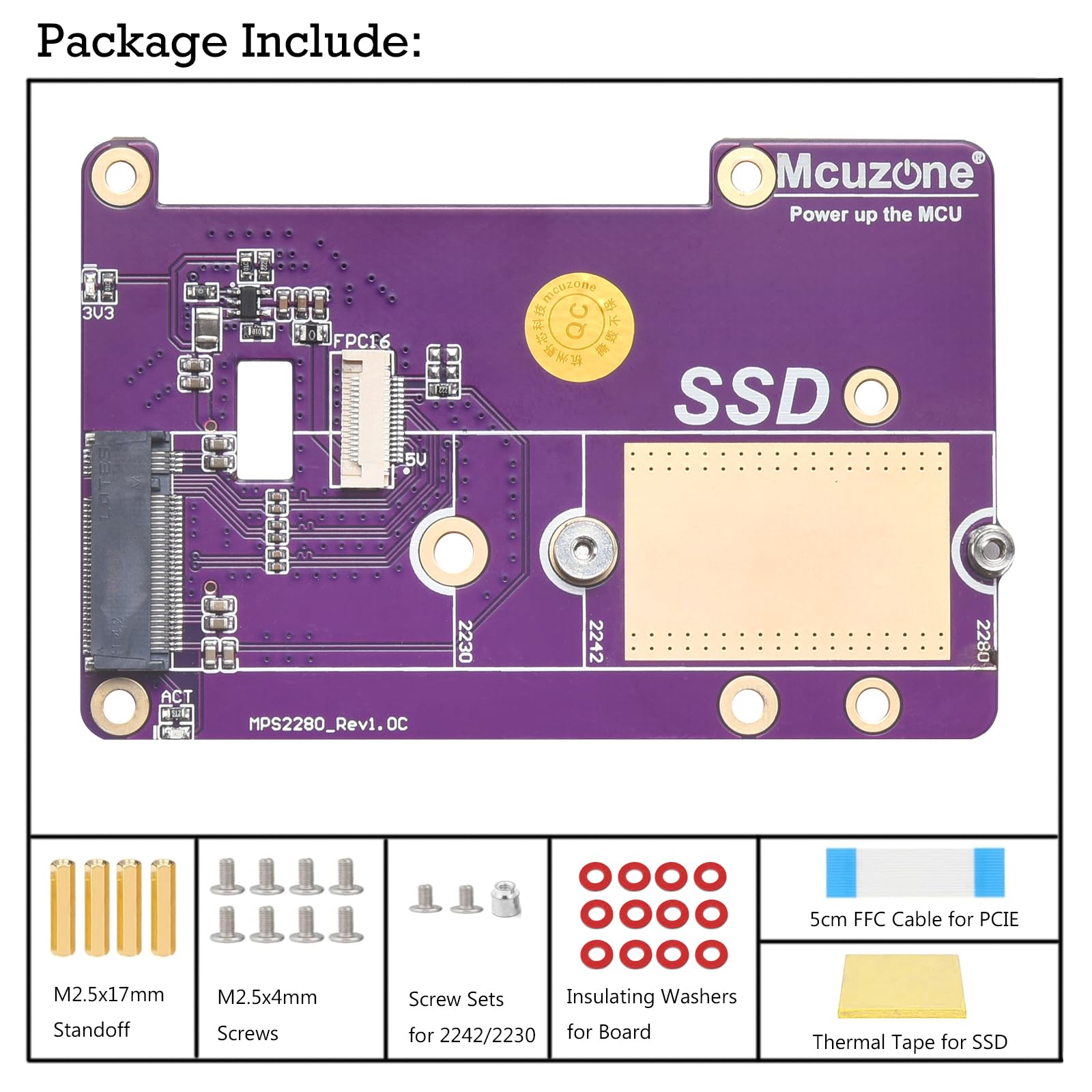 【Packing List】1 x 2280 NVME Board, 1x Screws Pack Accessories, 1x Thermal Tape for 2280 SSD, 1x FPC Cable