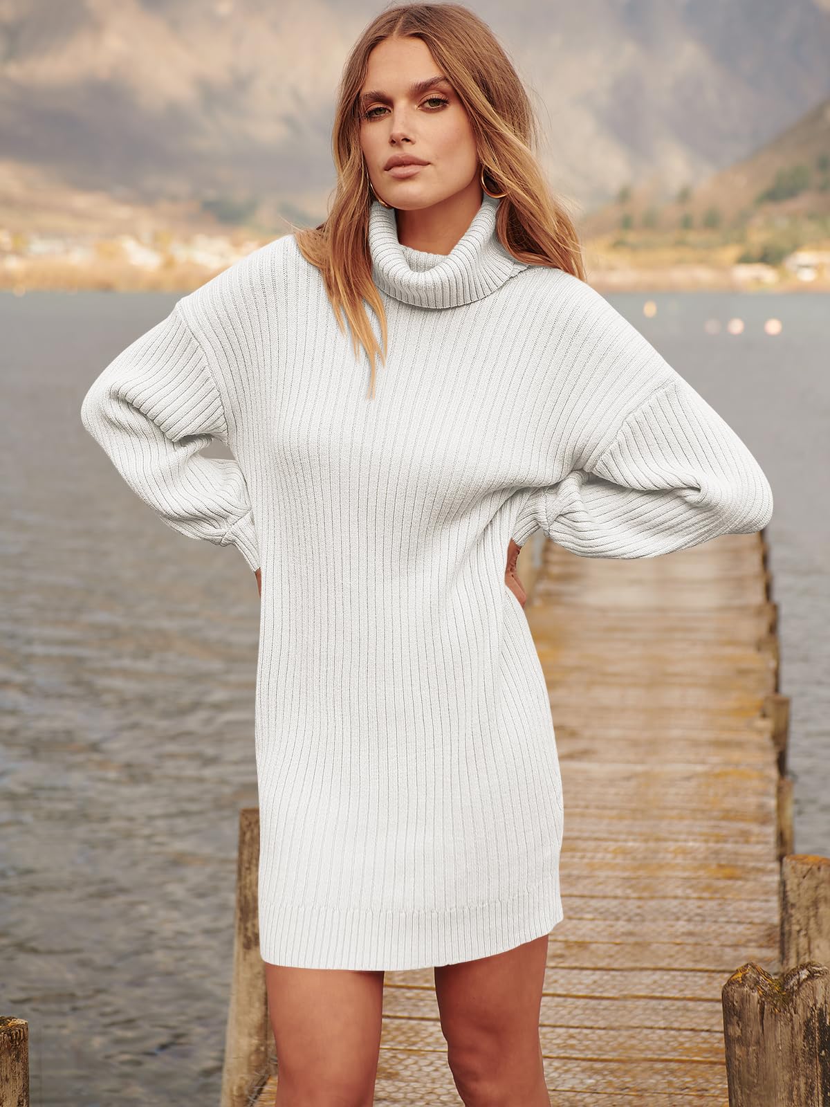 Features - Women's sweater dress, turtleneck neck, batwing long sleeve, knitted. This women's oversized dresses perfect for daily wear outdoor wearing, dating, casual, office; Great with high heels, boots etc