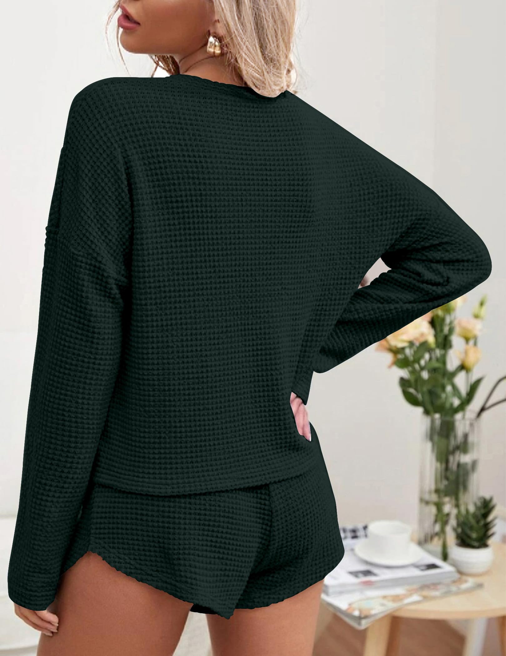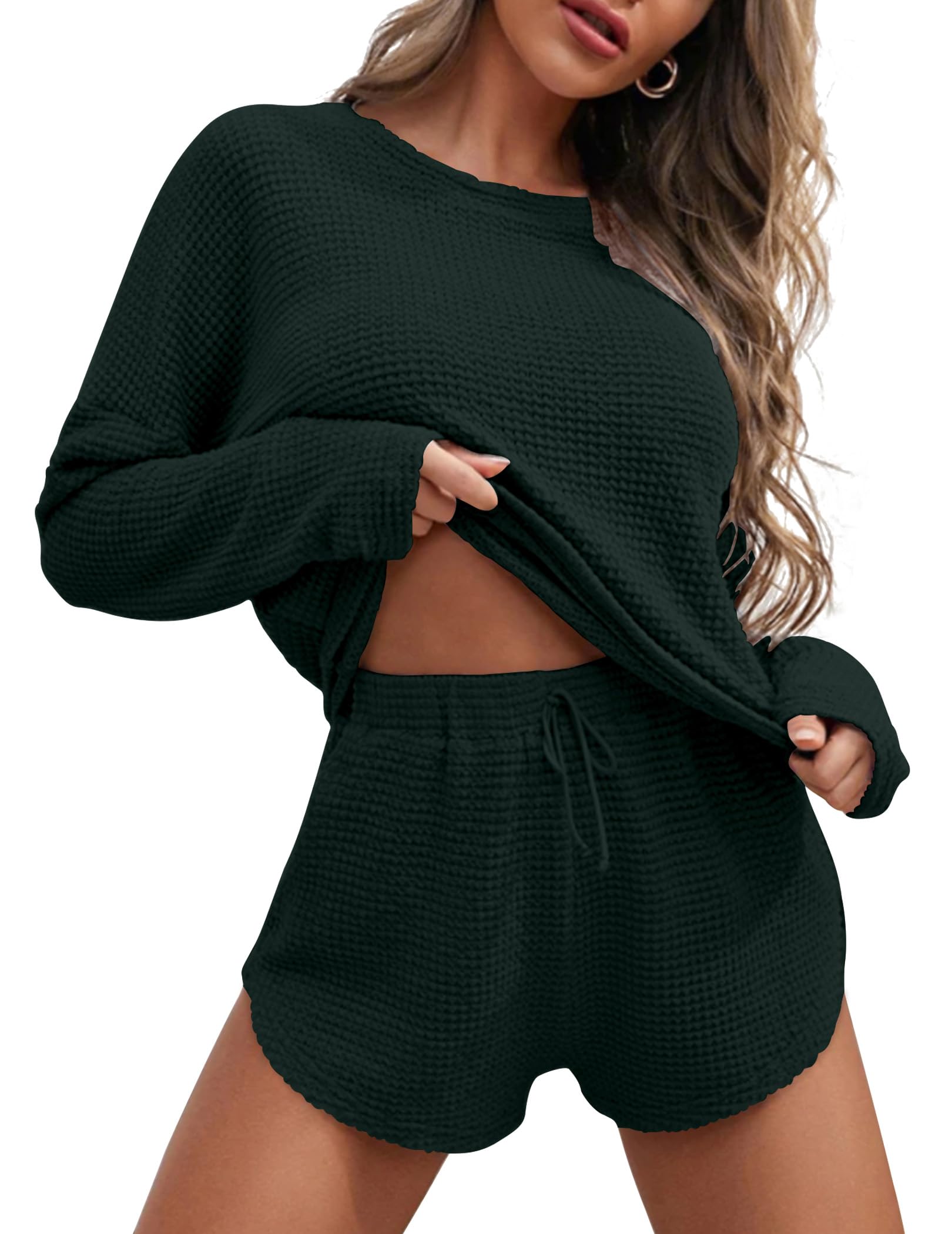 COMFY FABRIC: Waffle Knit lounge sets for women is made of Premium 95%Polyester+5%Spandex elastic knitted fabric, which is light and soft to ensure that your sleep and leisure time are very comfortable