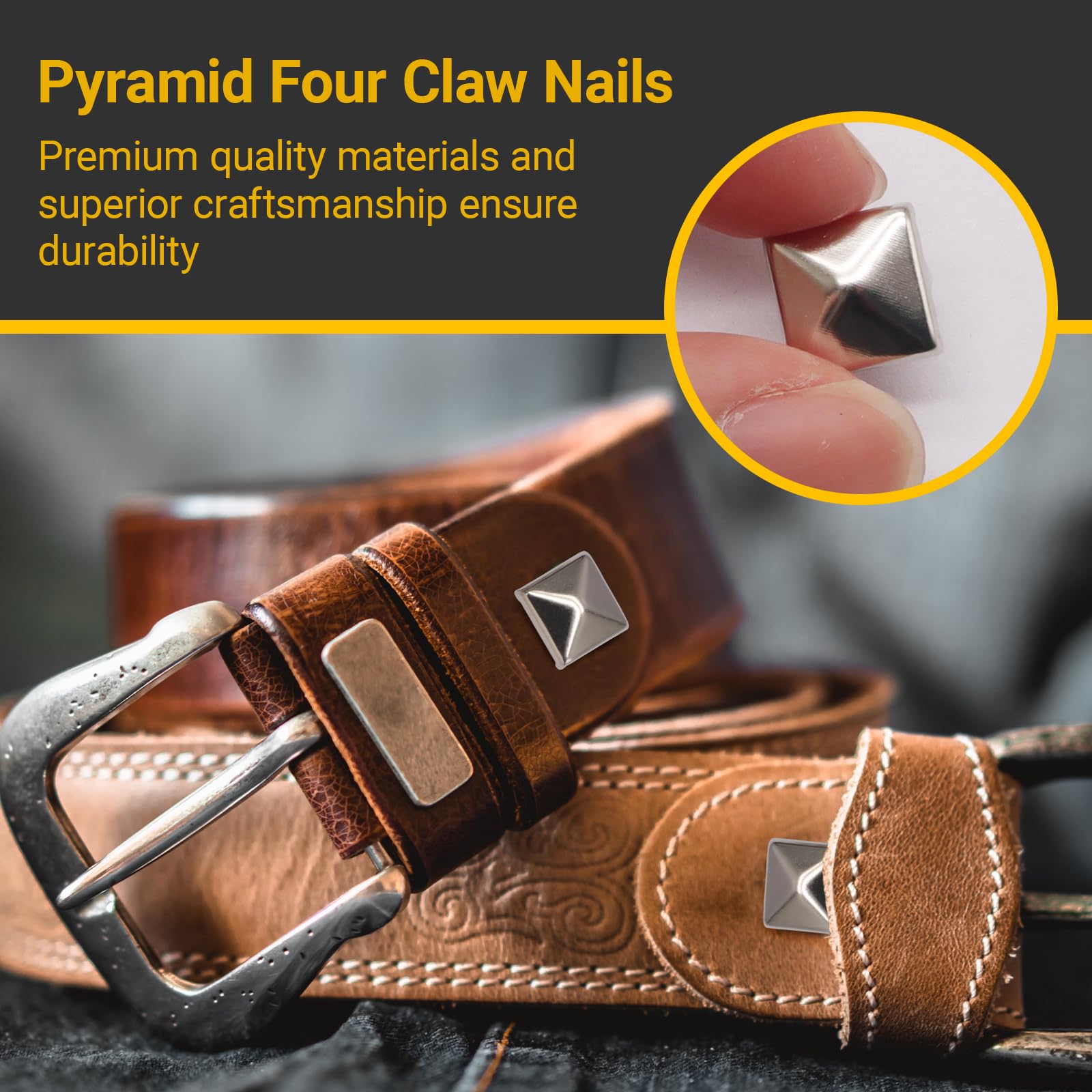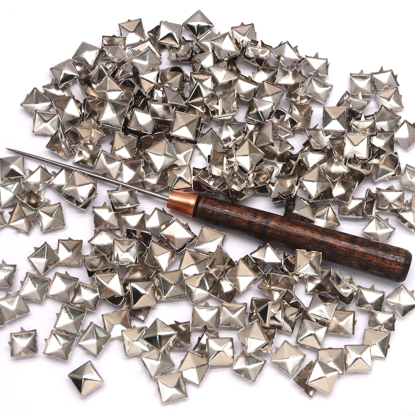 [ Effortless Installation ] Our square studs feature a user-friendly 4-prong design that bends easily for a snug fit on fabrics or leather. Simply press the prongs through the material and fold them back—no special tools required! Ideal for thicknesses up to 1.5mm. Note: Pre-punch holes for thicker materials to avoid damage.