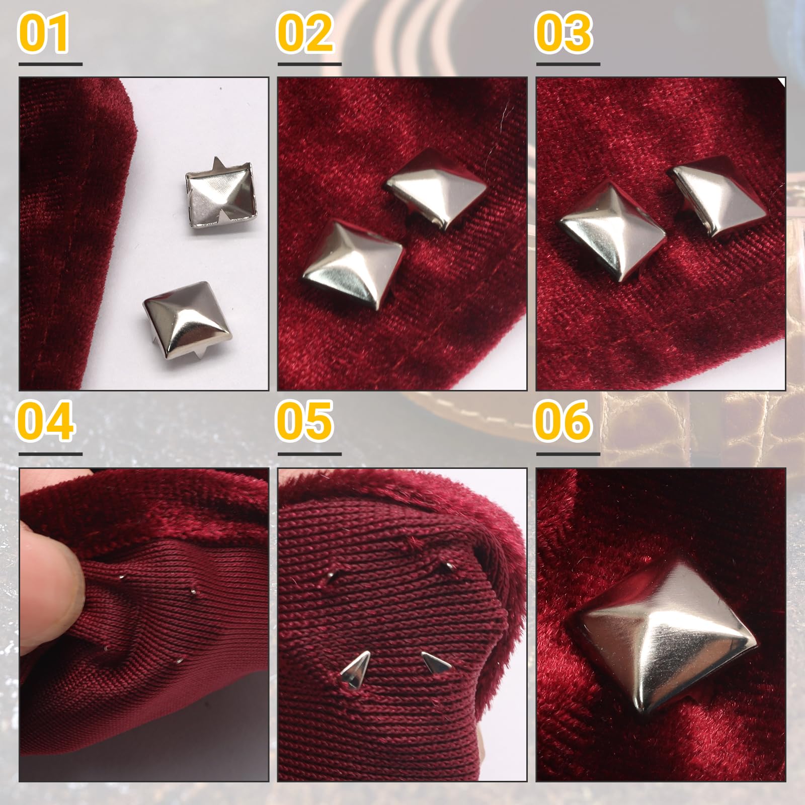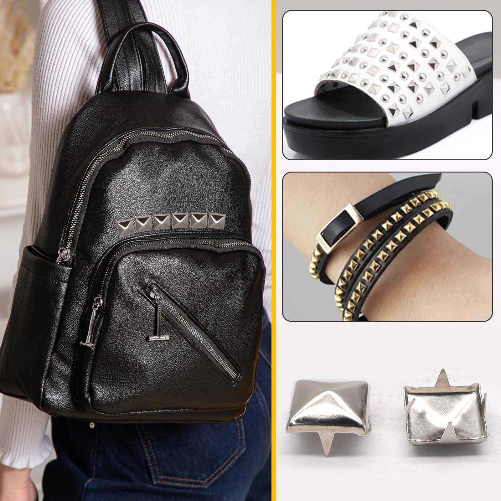 [ Versatile Applications ] From punk rock accessories to chic, our square studs elevate any project. Use them to personalize totes, boots, hats, or even home décor items like cushions and lampshades.