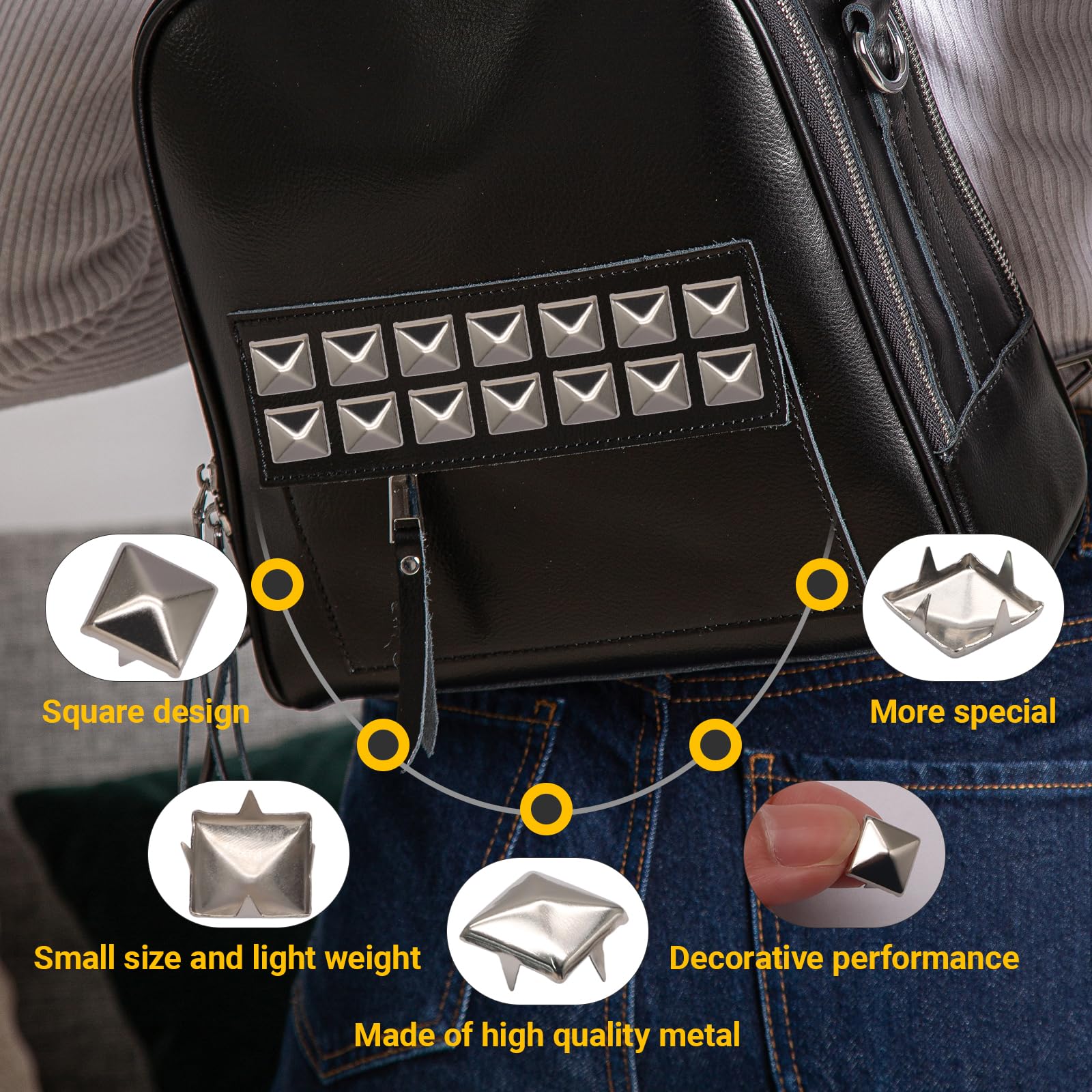 [ Quality materials ] Each square studs is crafted from high-grade metal with a smooth, polished finish that resists tarnishing. Perfect for adding a touch of edgy elegance to leather jackets, bags, belts, and shoes.