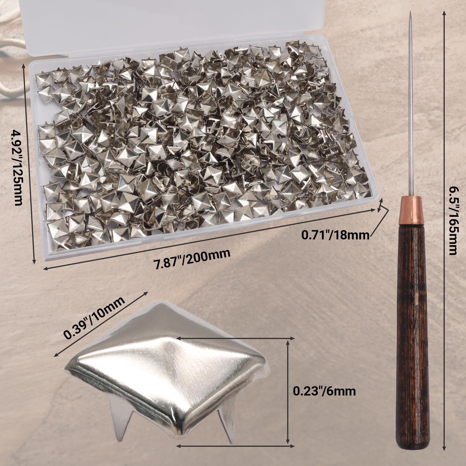 [ Thoughtful Packaging ] Each order comes in a resealable box to keep your square pegs organized and easily accessible. Quantities have been accurately calculated, however, due to manual sorting, there may be a slight variation of ±5 pieces. The included scratch awl serves a triple function: hole punching, pattern marking and leather stitching.