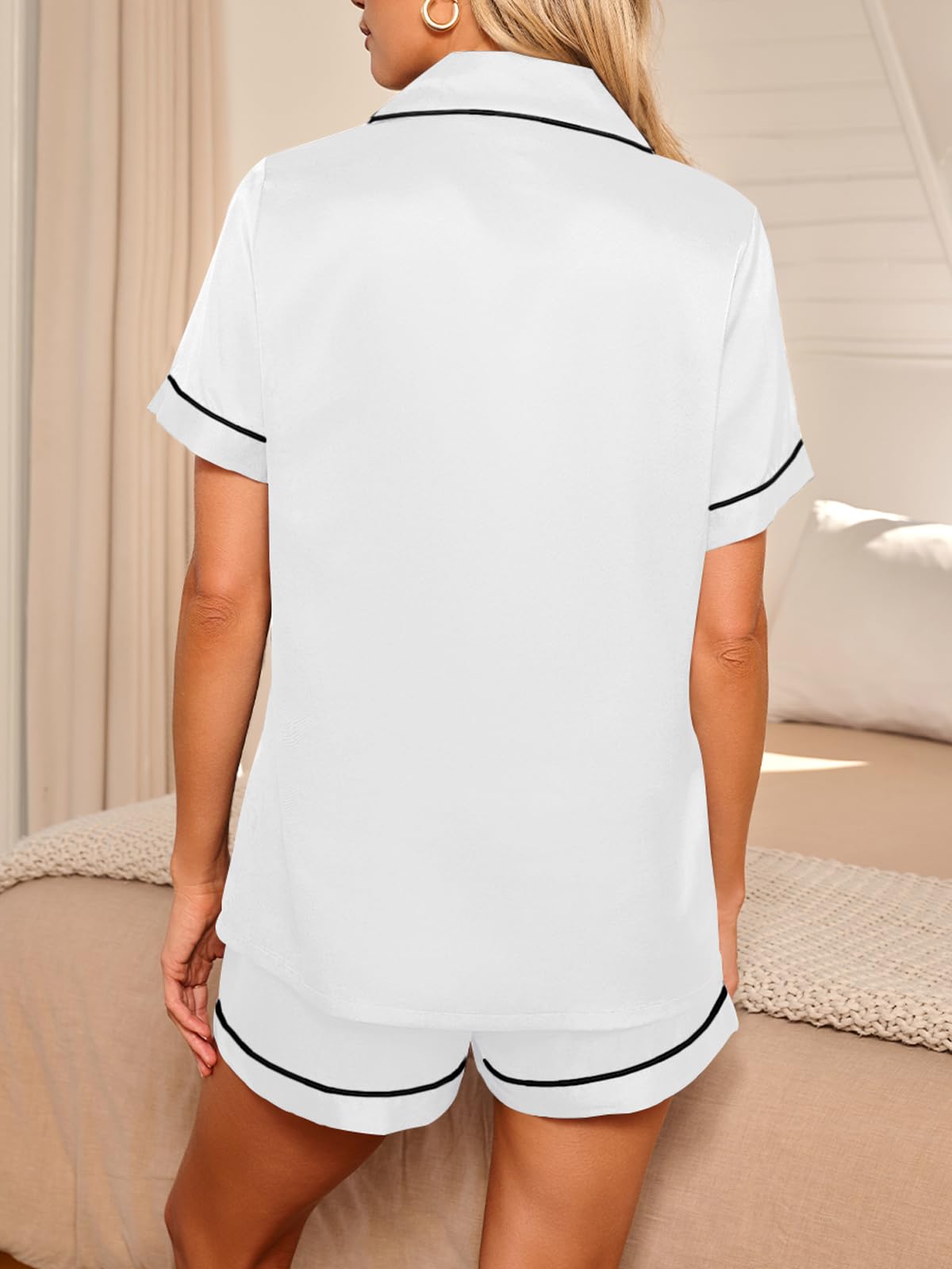 Pajama Top: Short sleeve sleepwear with notch collar,button front pajamas shirt and one chest pocket design.Lightweight and Skin-friendly silk pajamas for women.Great for sleeping,casual wear or lounging around the house or yard all day