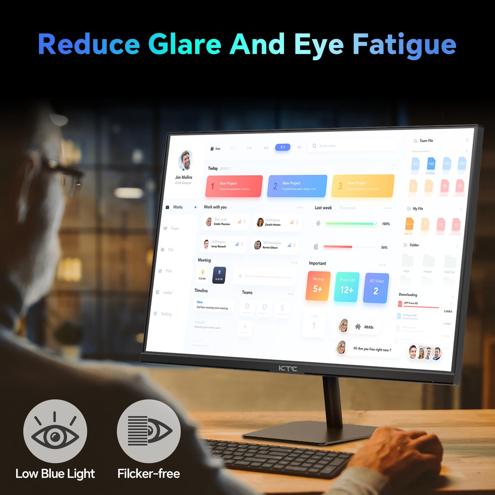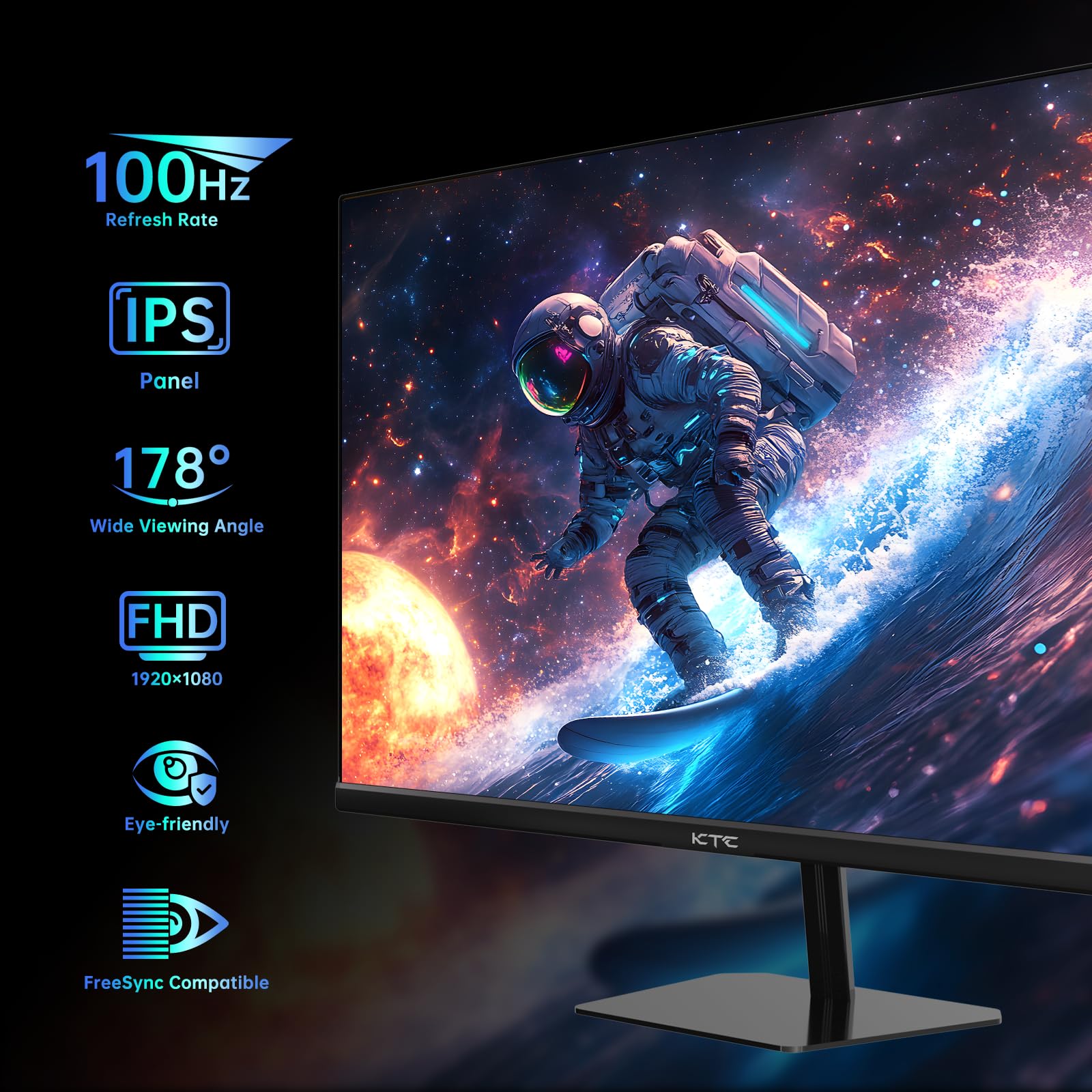 【24.5-inch IPS Monitor】KTC FHD computer monitor adopts IPS display to present amazing true color performance, tilt -5° to 15°, 178° viewing angle, allowing you to get a stunning experience from almost any viewing angle.