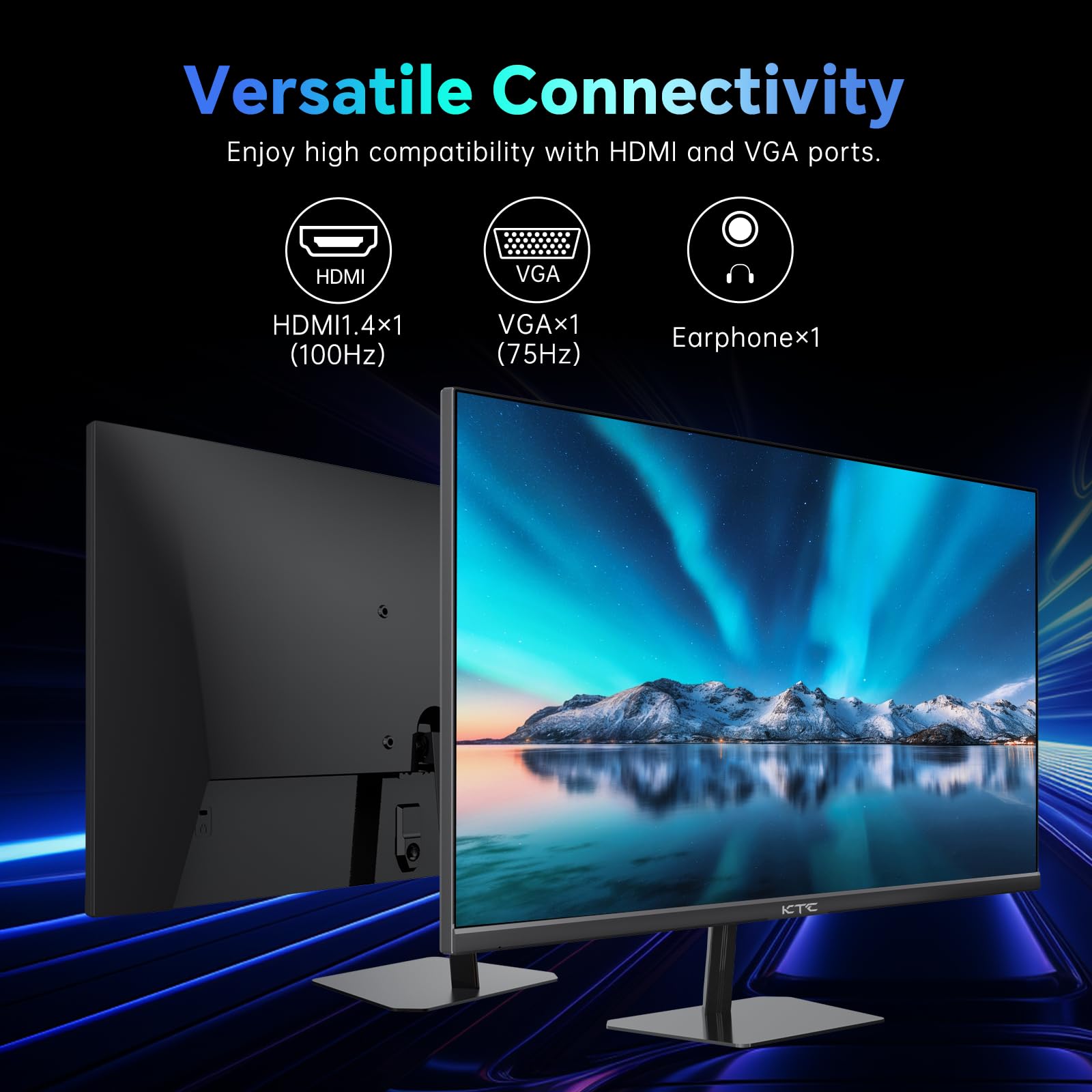 【Flexible Connection】The 24.5-inch monitor provides video interfaces via HDMI x1(1080p 100hz) and VGA x1(1080p 75hz), easily switches between office and gaming. VESA 100mm*100mm support.