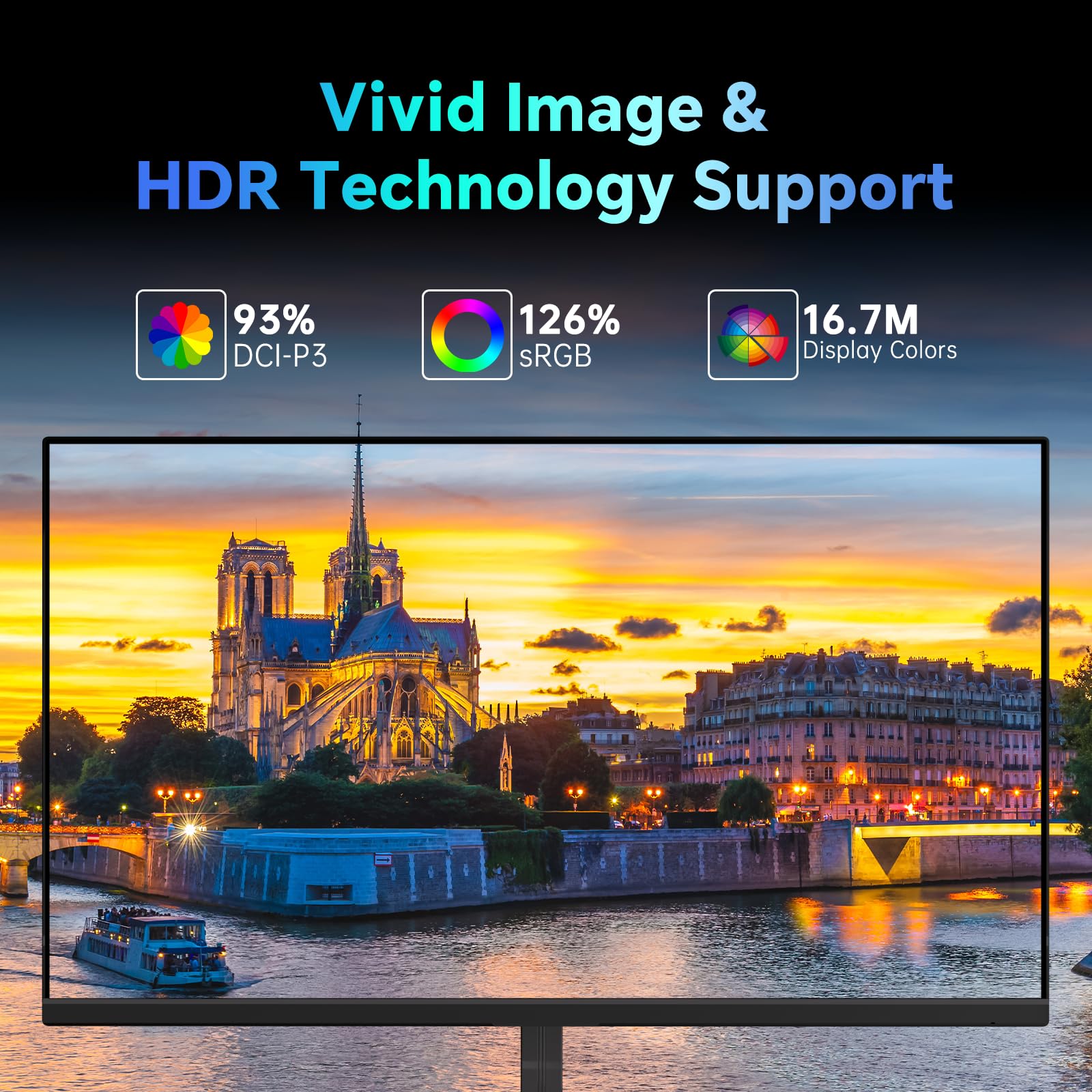 【Rich Colors】126% sRGB wide color gamut, 16.7M 8 bit colors, bring brilliant colors to characters and scenes, suitable for graphic design or photography. 300cd/m² brightness, 1300:1 contrast ratio, enhance your viewing experience.