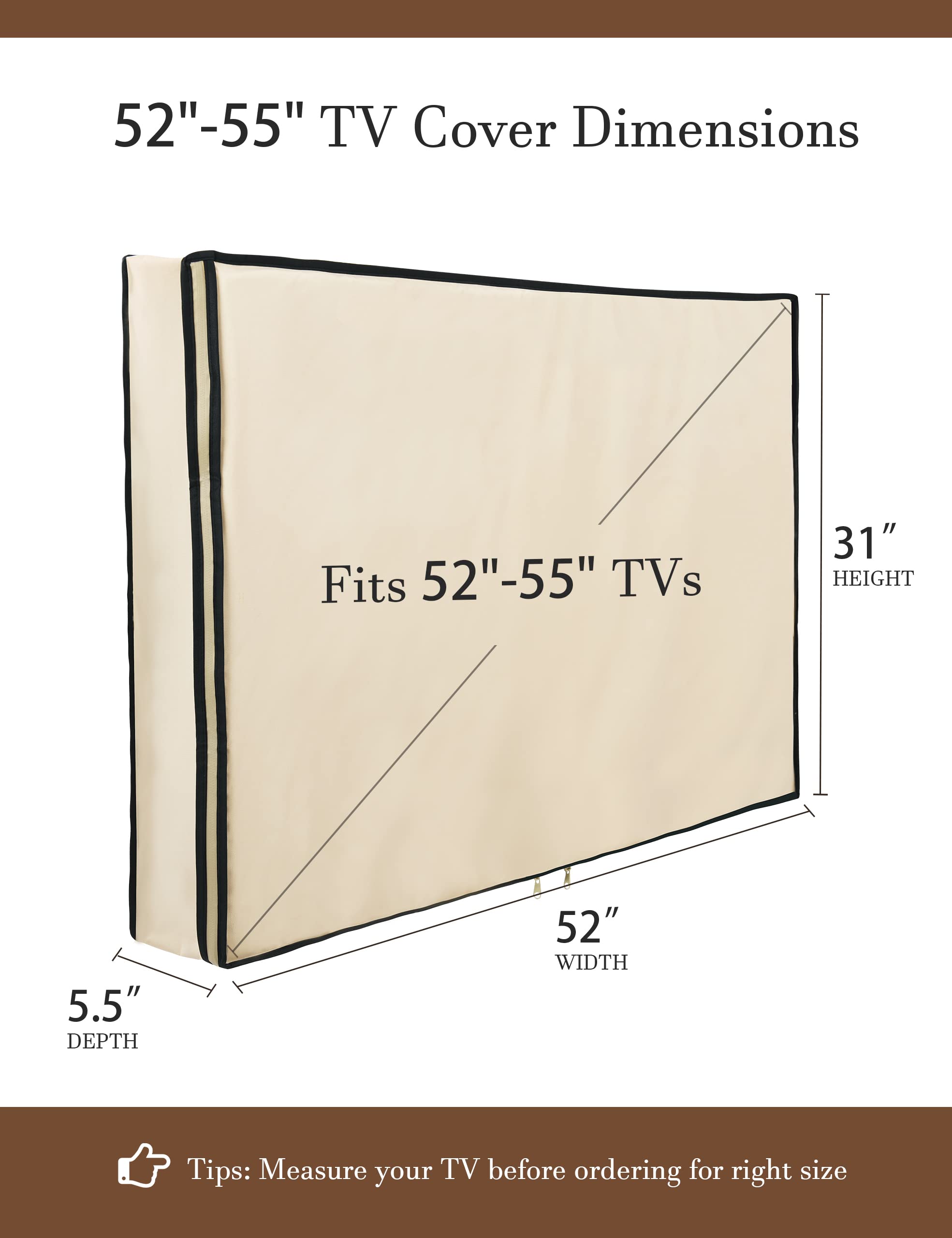 Find The Right Fit: Available in the perfect size for your outdoor TV, our cover measures 52 inch wide, 31 inch high, 5 inch deep. Before purchasing, be sure to measure your TV to ensure a proper fit