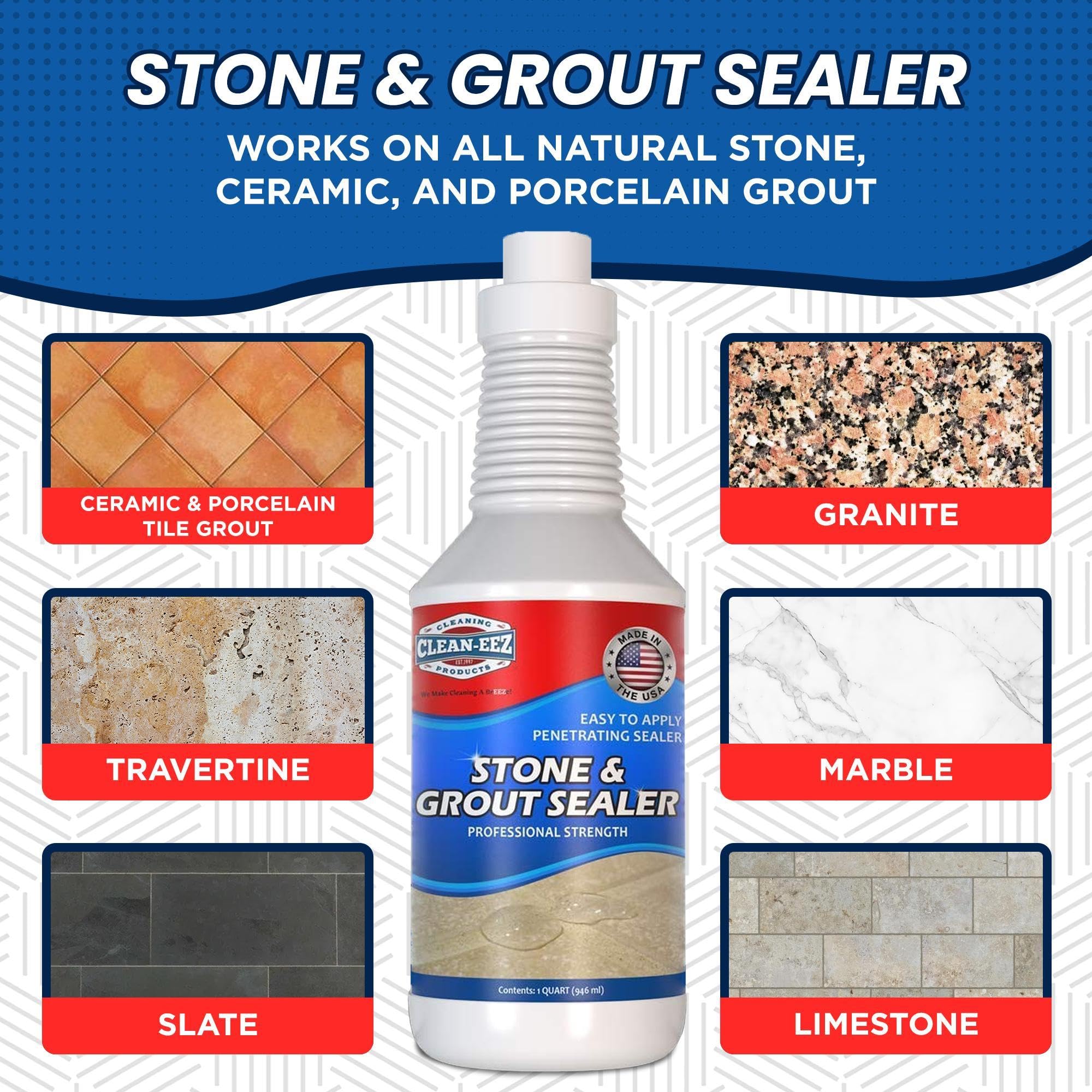 PROFESSIONAL STRENGTH FORMULA: Trusted by expert tile cleaners, our potent sealer shields grout and stone surfaces from tough stains, ensuring a lasting, spotless look. Perfect for Natural Stone.