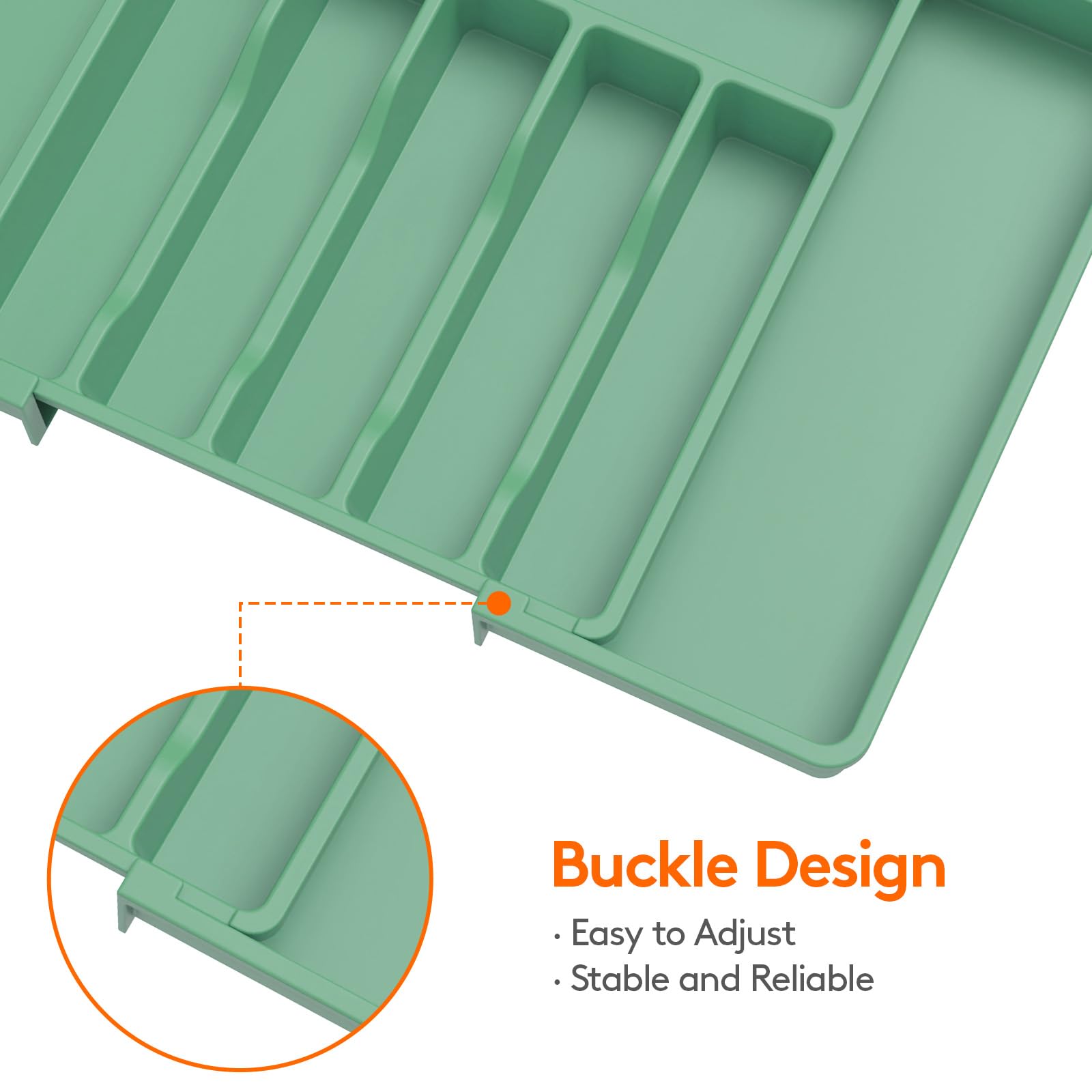 Thoughtful Design: Unique groove design for easy access to cutlery; The buckle design ensures smooth sliding and effortless adjustment, preventing partition displacement. Lifewit utensil holders bring seamless order to your kitchen!