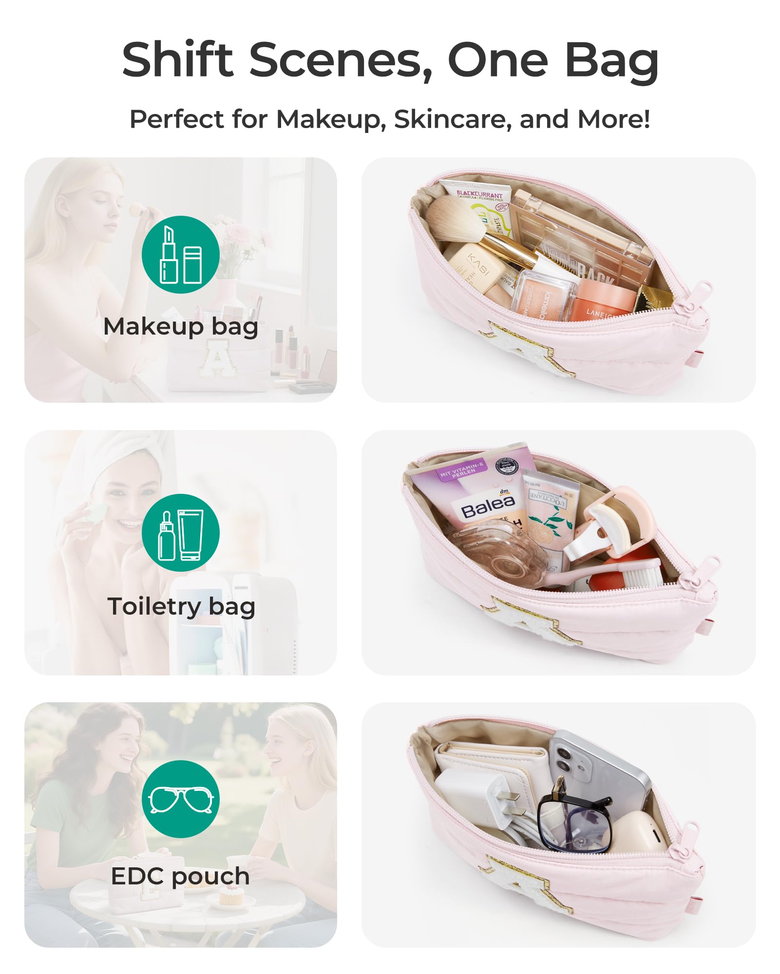 Fits Anywhere, Holds More Than You Think - This mini makeup bag’s ultra-slim profile (just 1.6in thick!) slides into tight purse corners or crowded carry-ons. Your secret weapon for clutter-free outings – and the perfect giftable size