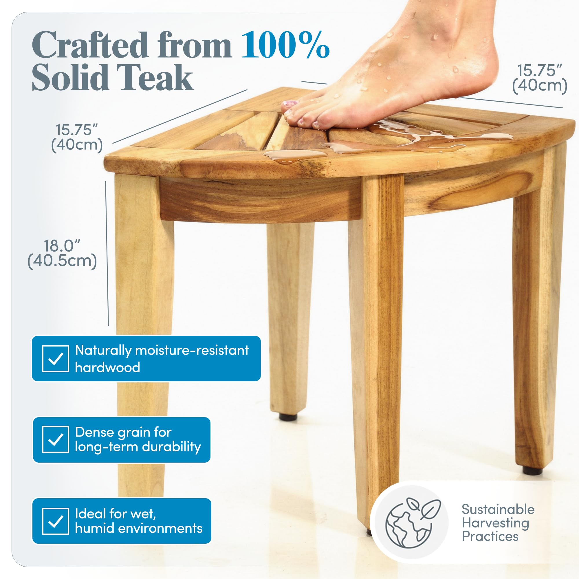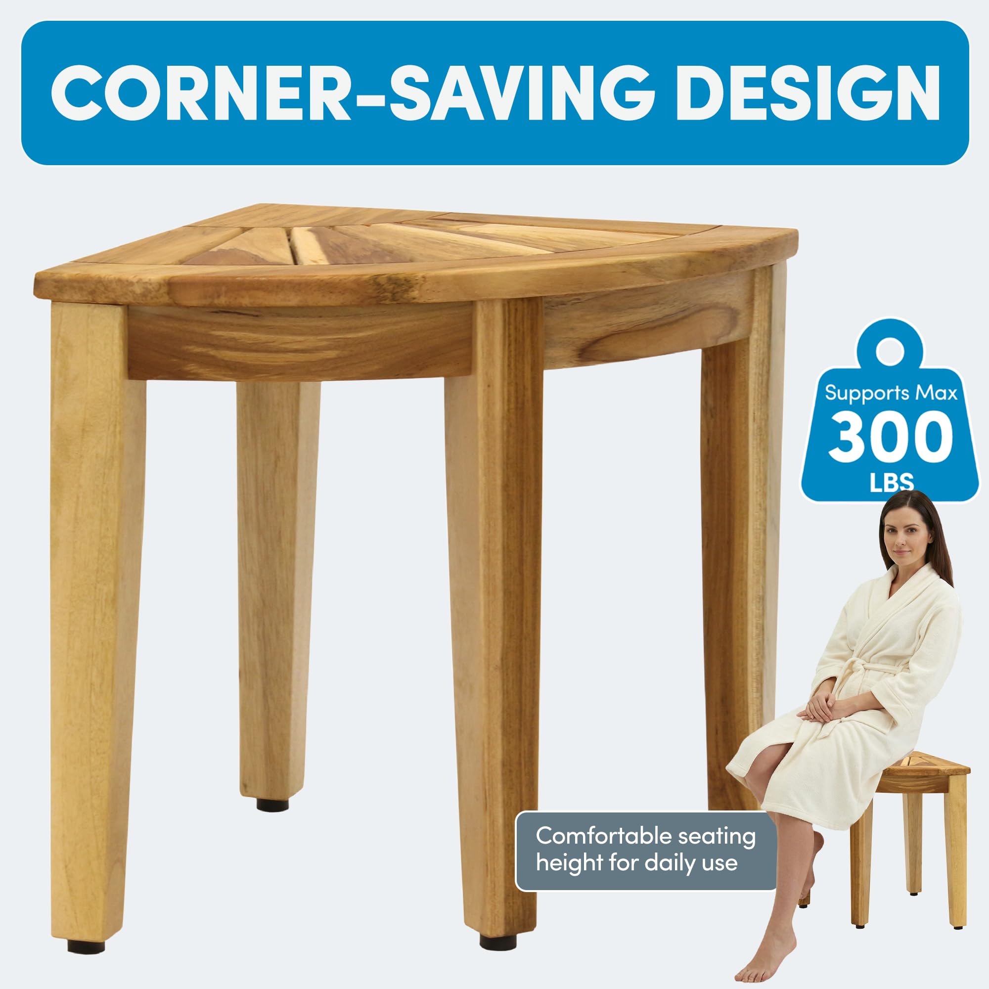 Compact & Convenient Dimensions: Maximize your space with this compact teak shower bench, designed to fit seamlessly into your shower or bathroom corner. Its thoughtful dimensions make it the prime solution for tight spaces, providing seating and bathroom storage without overwhelming the room. Ideal for any bathroom organizer needs!