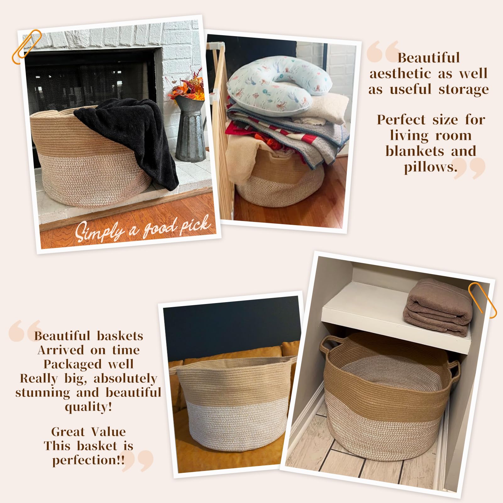 Neutral Design Matches Any Decor: Our white and jute blanket basket seamlessly blends into the laundry room, bedroom, bathroom, or living room space. The stylish design is the perfect compliment to modern, boho or farmhouse room décor