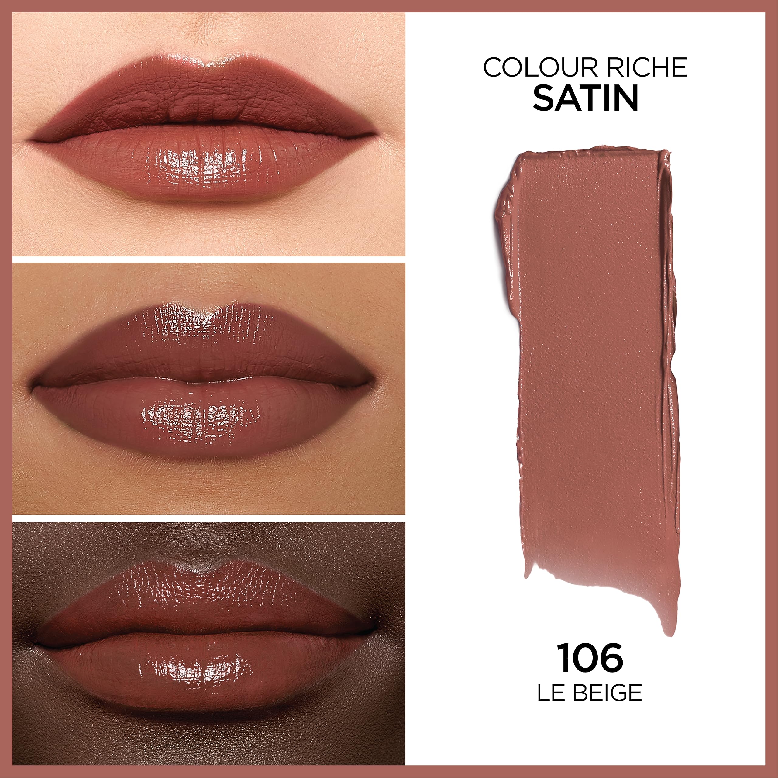 Indulge in richness beyond compare with L'Oreal Paris lipstick from color Riche. Color Riche lipstick Contains nourishing ingredients like Vitamin E, plus the lipstick is enriched with Argan Oil to condition and soften lips. Your lips are kept soft, smooth, and hydrated. With a spectrum of gorgeous satin shades from bold to nearly nude, Color Riche lipstick offers a lip color that's perfect for every look and any occasion.