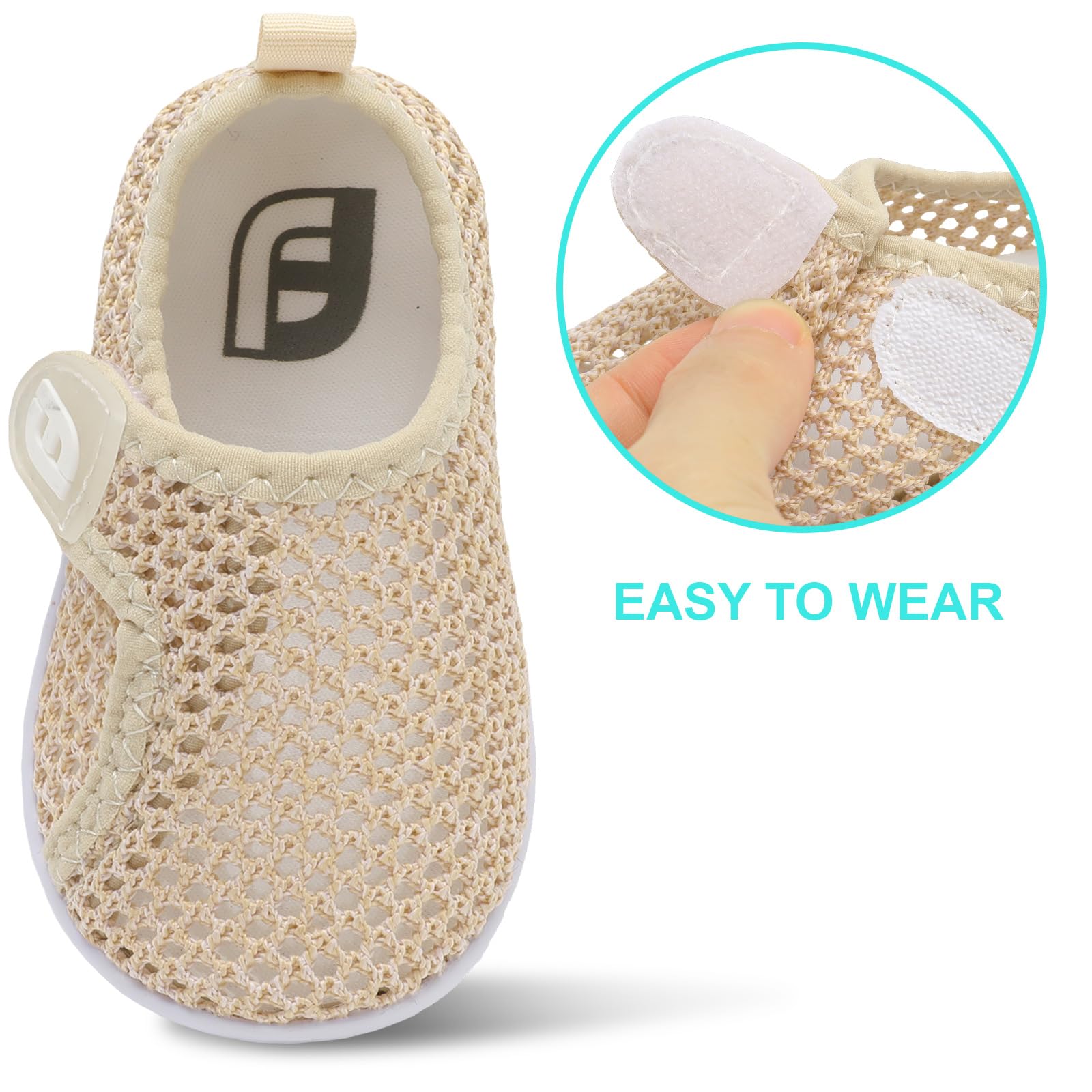Convenient to wear: Baby beach sandals with Hook-and-Loop design makes these toddler water shoes easy to wear and take off. Elastic shoe neck design reduce abrasions when walking or running