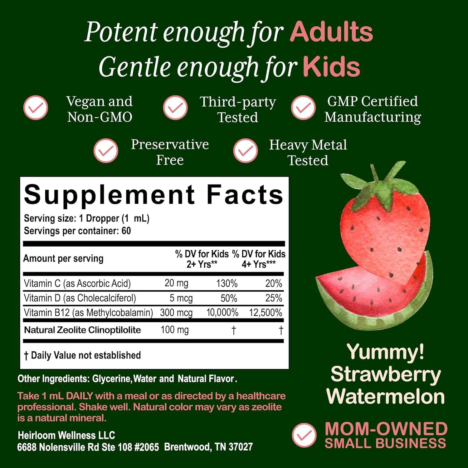 MOM-FORMULATED WITH CLEAN INGREDIENTS: Created by a wellness-focused mom using pure zeolite with Methyl B12, Vitamin C, and Vitamin D3. Designed for safe, effective daily detox support to help maintain balance and energy in children of all ages.*