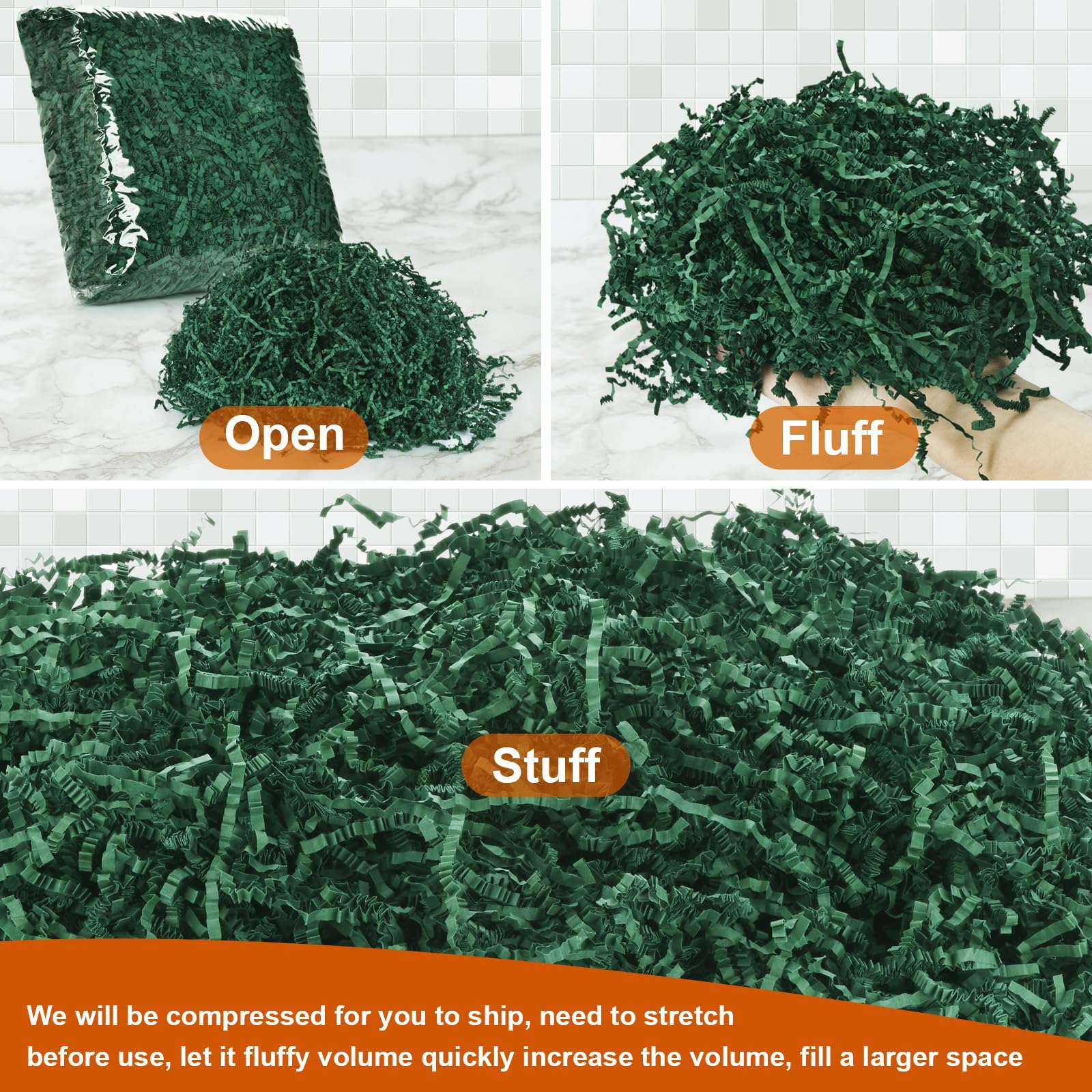 How To Use: We Compress The Crinkle Paper Filler During Transportation, When You Use It, You Need To Stretch It To Make It Fluffy So That It Can Fill Up A Lot Of Extra Space.