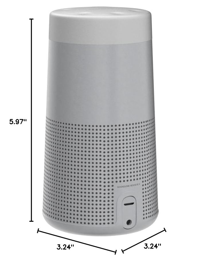 Deep. Loud. And immersive, too. SoundLink Revolve II is a portable wireless speaker from Bose that’s engineered to deliver true 360° sound for consistent, uniform coverage. Place it in the center of the room to give everyone the same experience. Or set it near a wall and sound will radiate and reflect around the room, immersing you in that same feeling you felt at your favorite show. The tapered cylindrical shape makes this Bluetooth speaker easy to grab and go. Its durable aluminum body provides worry-free protection, and its water- and dust-resistant design (IP55 rating) lets you keep the party going, even if it gets splashed by the pool. The rechargeable, lithium-ion battery plays up to 13 hours — for full-day listening. Voice prompts talk you through wireless Bluetooth pairing, and you can easily take calls with the built-in speakerphone. You can even access your device’s default voice assistant right from your speaker. Connect the speaker to an Amazon Alexa-enabled device, like the Echo Dot, for even more control. Pair two SoundLink Revolve speakers in Party Mode for more performance. Try Stereo Mode where instruments and vocals will naturally separate and spread across an immersive soundstage — making your music sound and feel as you know it should. Bose SimpleSync technology lets you pair the Bluetooth speaker with a member of the Bose Smart Family to play in sync. The Bose Connect app helps you manage your devices, unlock features, and access future updates. You can easily charge the speaker via Micro-B USB port. And the auxiliary input allows you to connect to other audio sources. This mobile speaker is available in Triple Black or Luxe Silver. Included: SoundLink Revolve II Bluetooth speaker; USB cable; wall charger.