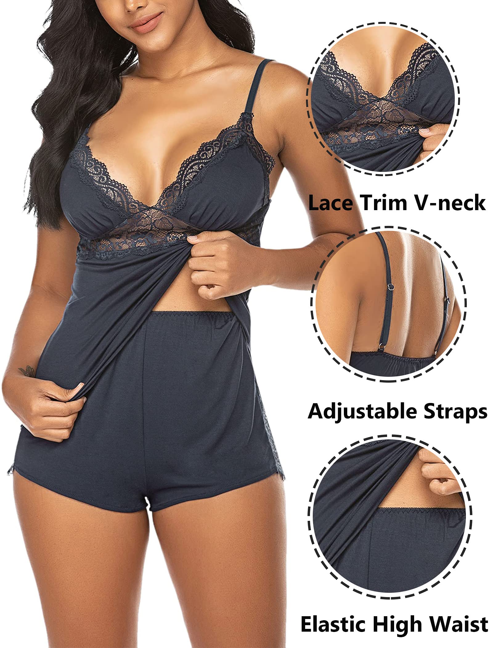 🌙Breathable & Skin-Friendly Fabric:Womens pajama sets are made from ultra-soft, lightweight modal fabric with stretchy elasticity which keeps you cool all night. Reinforced lace trim resists fraying for lasting quality.