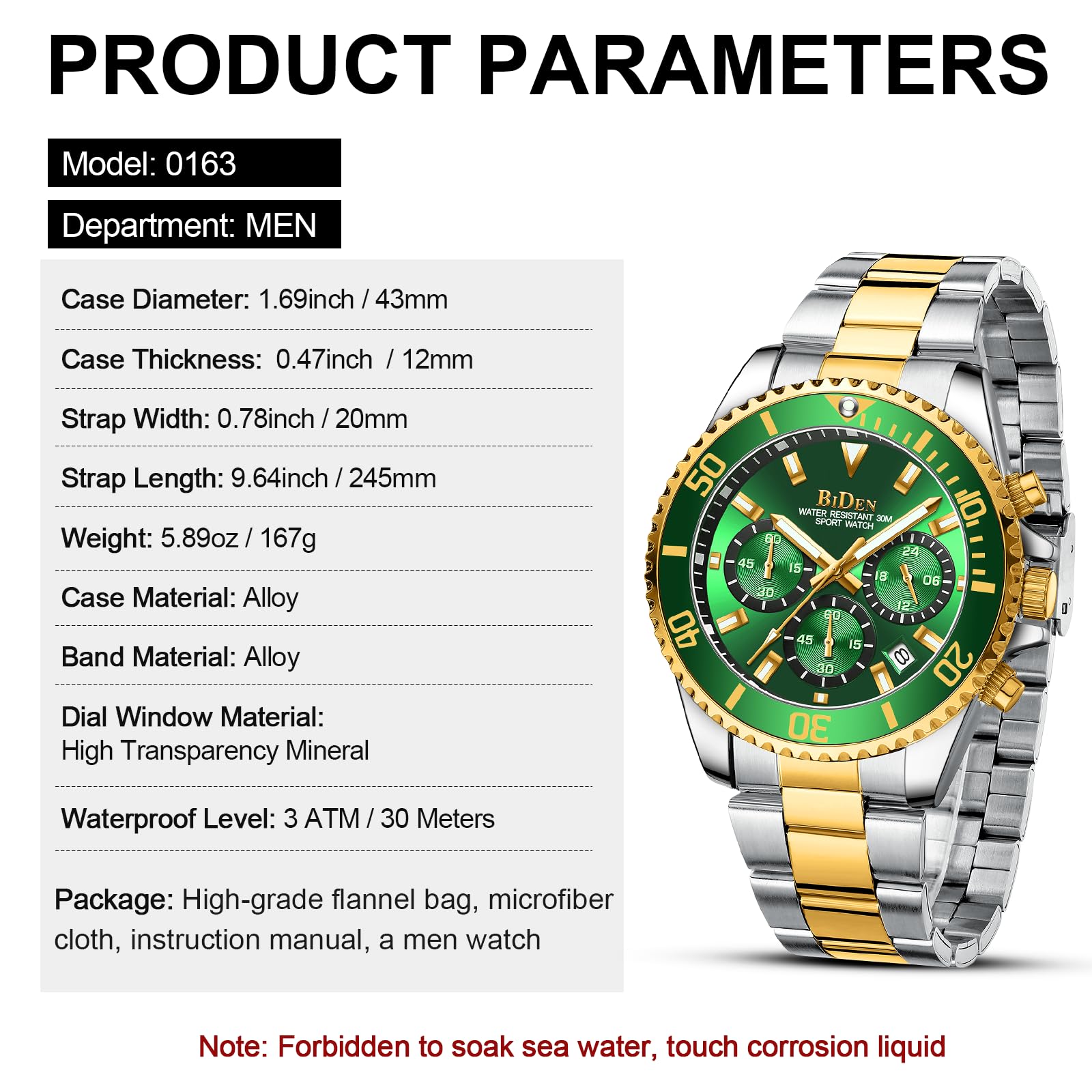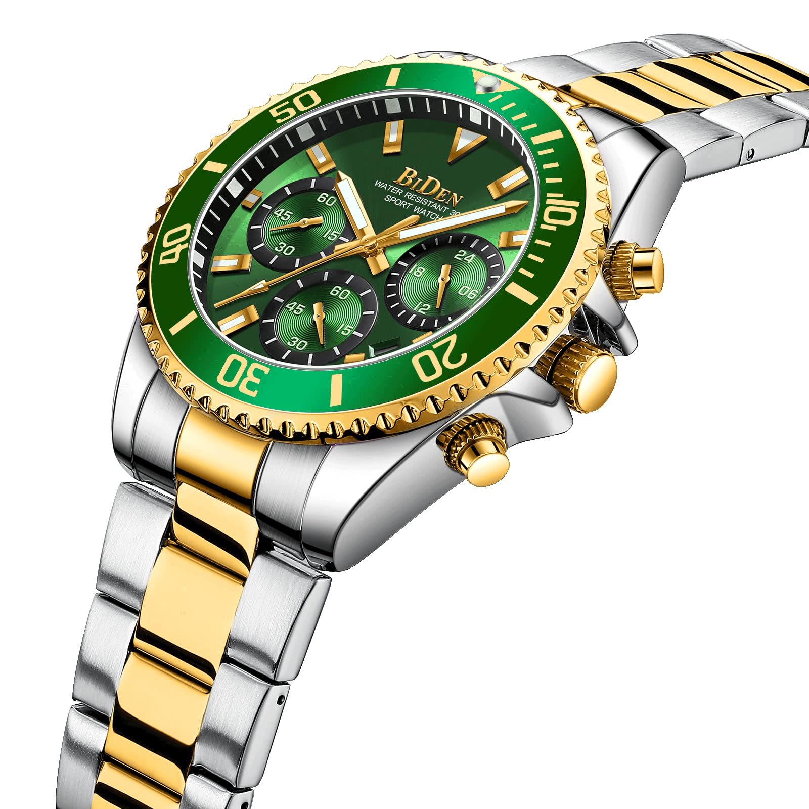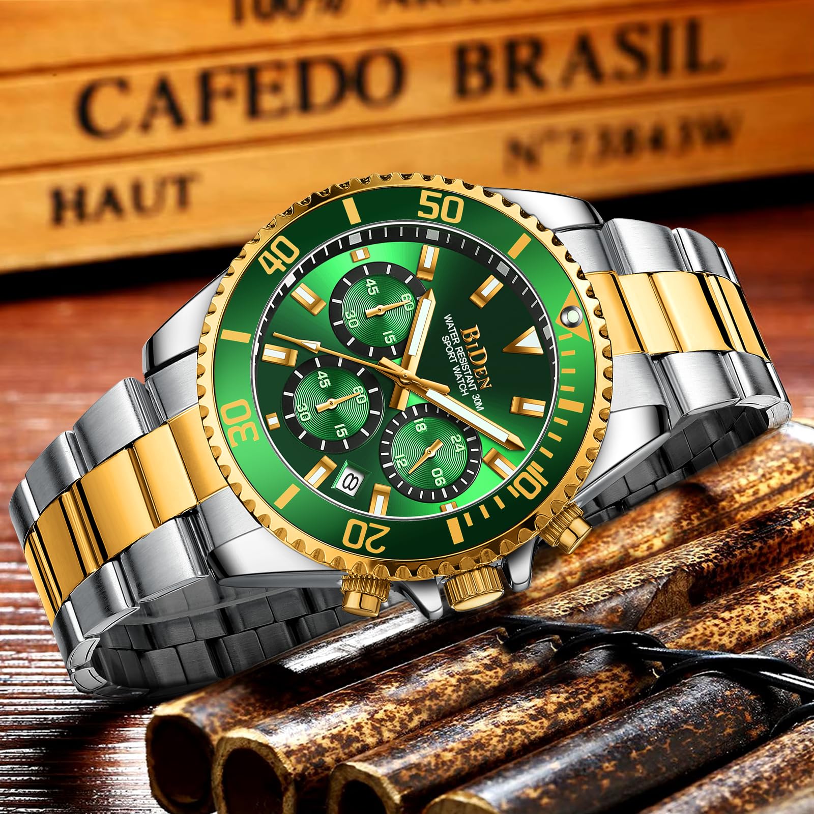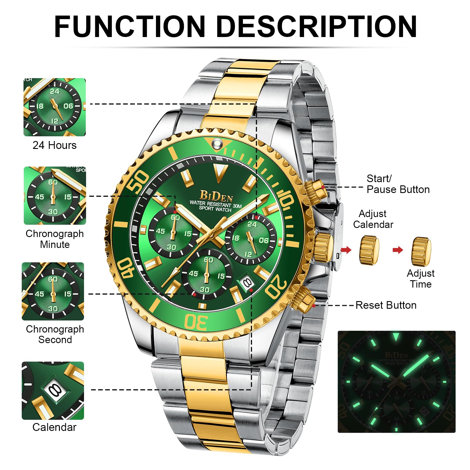 ★ Men's Multifunctional Design Watch ★: BIDEN offers a range of stylish, sophisticated watches. Three multifunctional sub-dials show a stopwatch and date calendar. It has a rotating bezel and Japanese quartz movement and battery to ensure accurate time keeping.