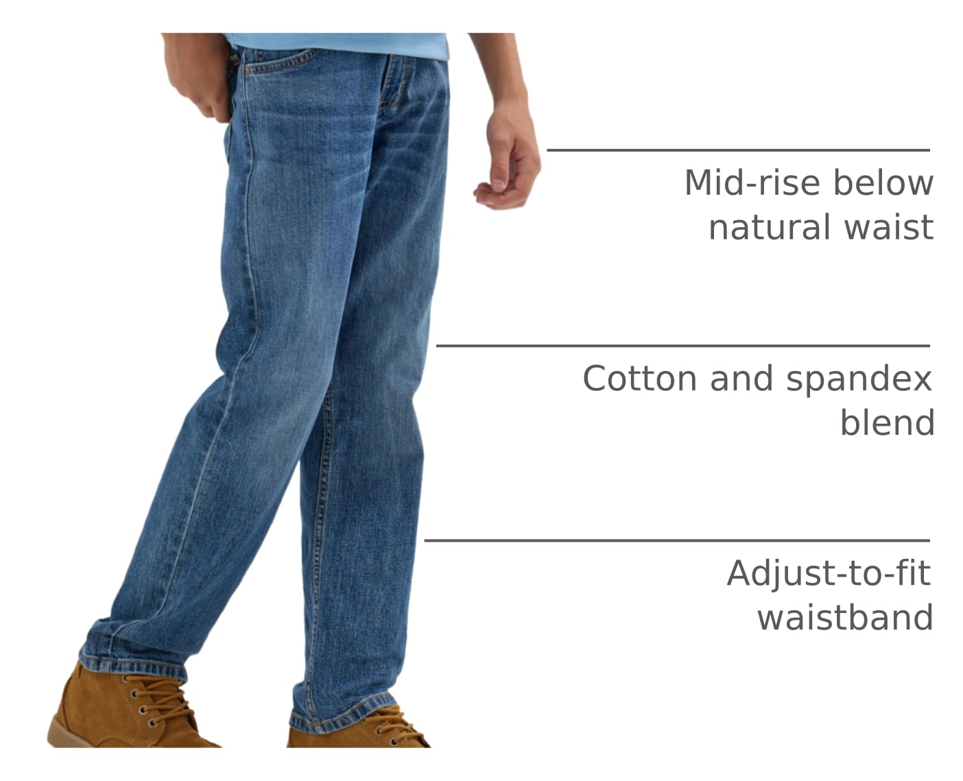 STRAIGHT FIT. These jeans sit below the natural waist (mid-rise) with a regular fit through the seat and thigh. A straight leg opening gives these boys jeans an updated look and an adjust-to-fit waistband helps adjust to growing kids