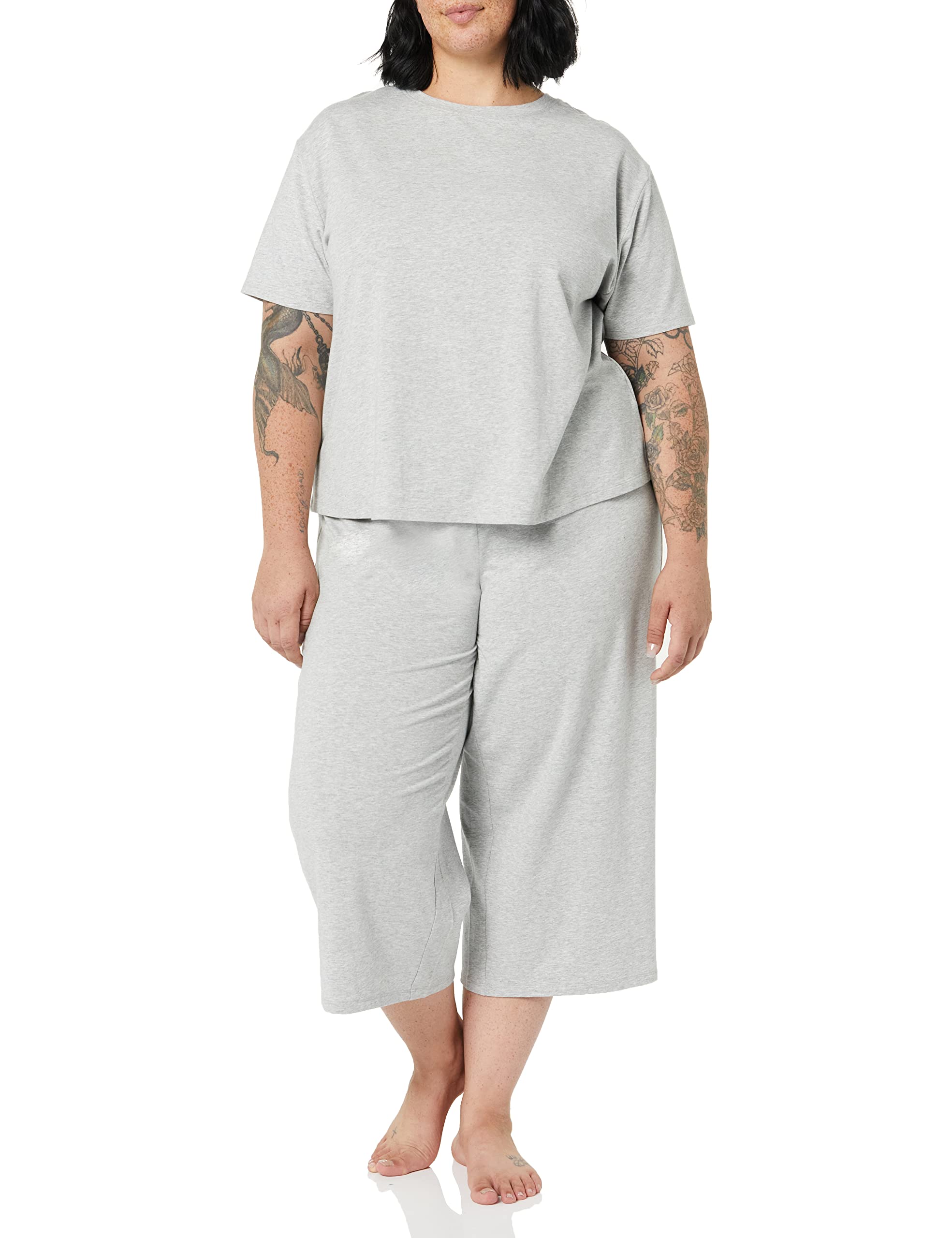 DETAILS: Designed with a crew neck and relaxed shoulder seams. The cropped pant features an elasticated waistband and wide legs offering ease and comfort.