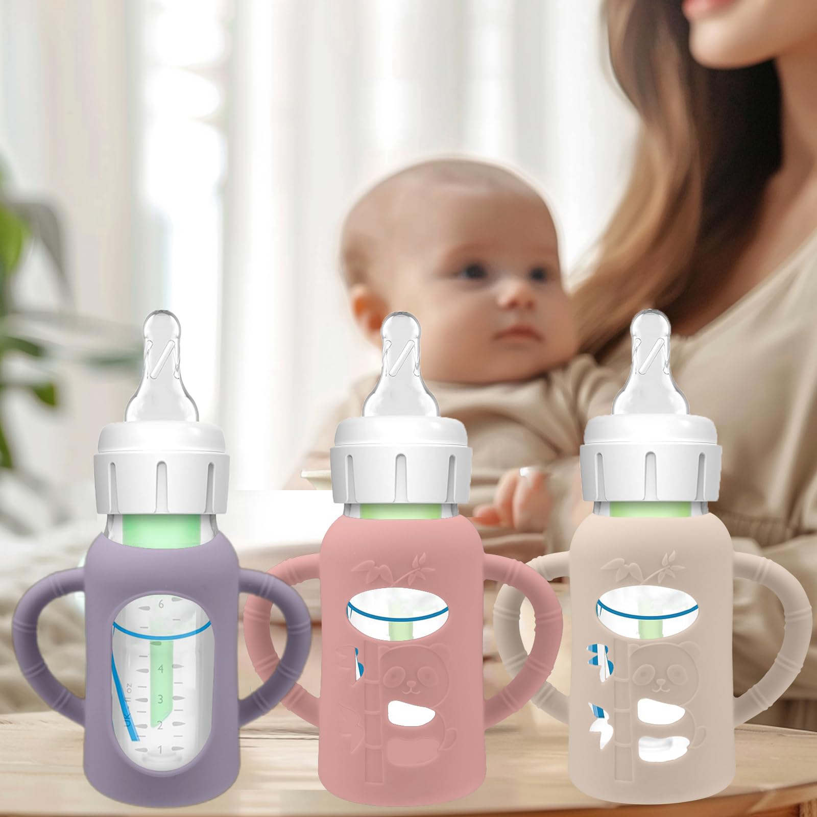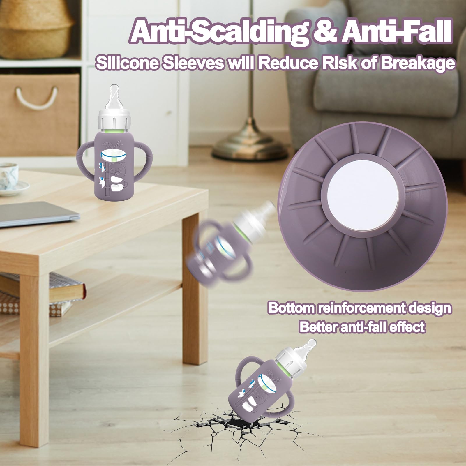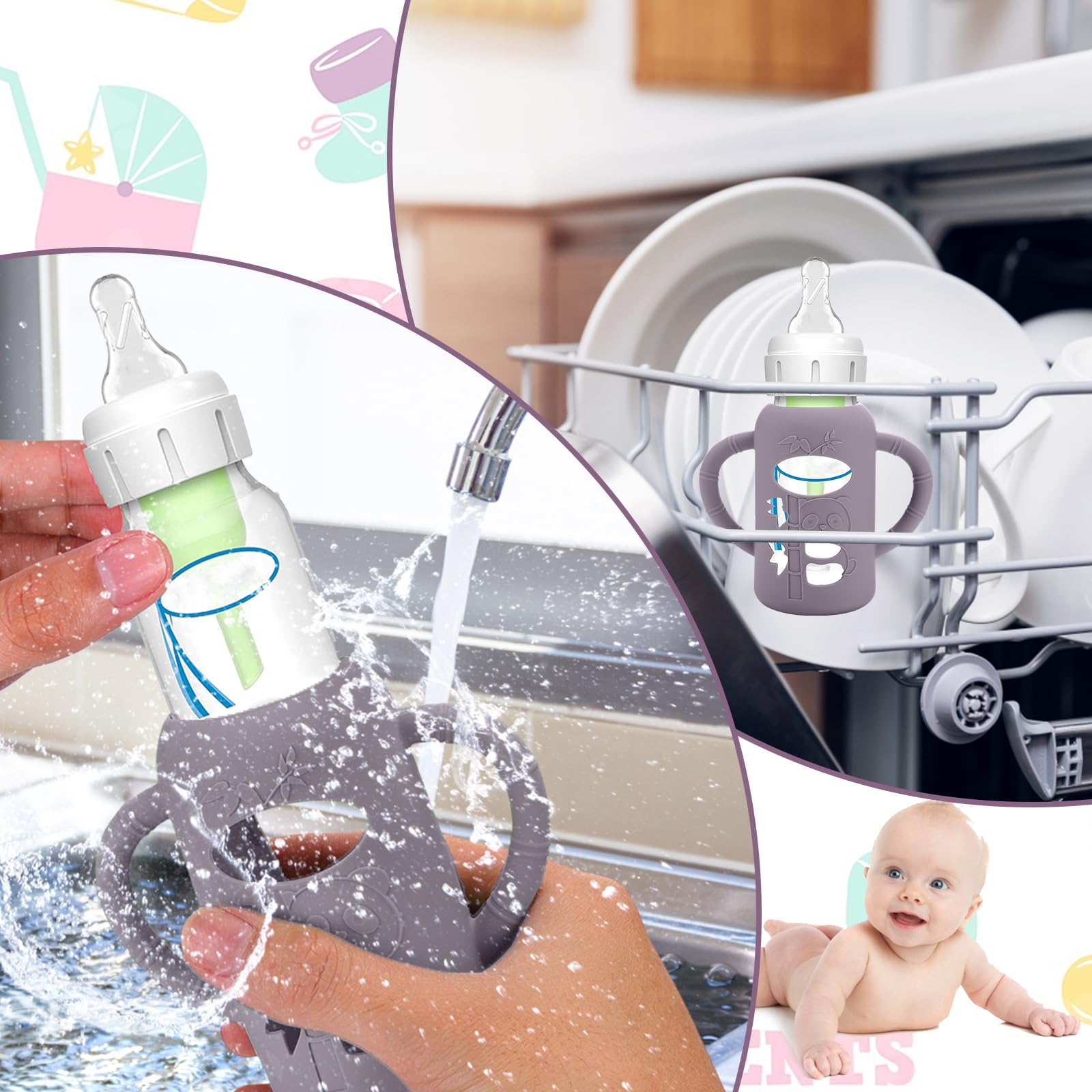 Unique Designed for Baby Bottles - The silicone sleeves for Dr. Brown's Baby Bottles can against drop down,bumps and scratches. These are a must essential product for using glass baby bottles. They provide a more sturdy protection for glass baby bottle from breaking if dropped, which also unique handle design shape make it easier to grip and hold