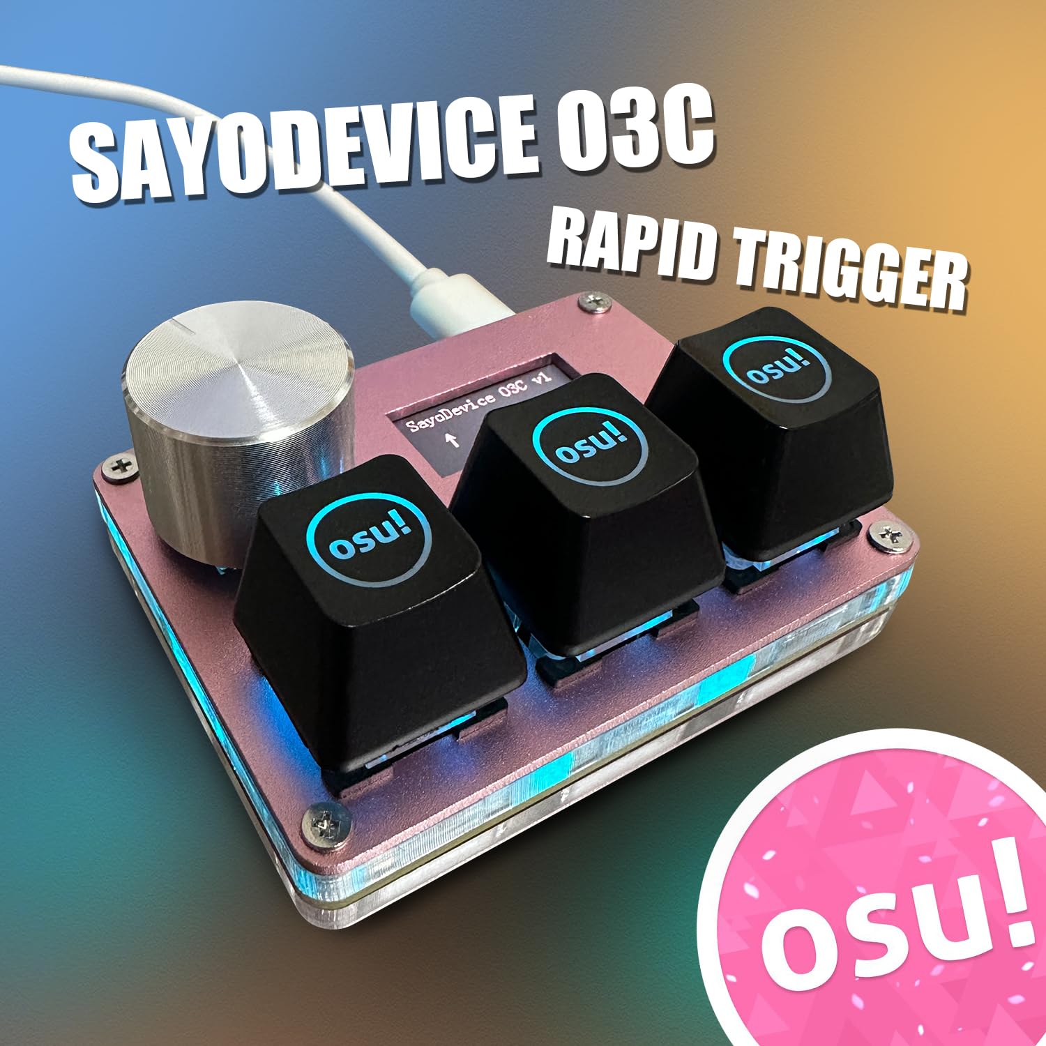 【O3C OSU SayoDevice Keyboard】This keyboard with 3 Hall magnetic linear switches, 1 knob, 1 screen! TYPE-C,USB 2.0 high-speed 8000HZ.