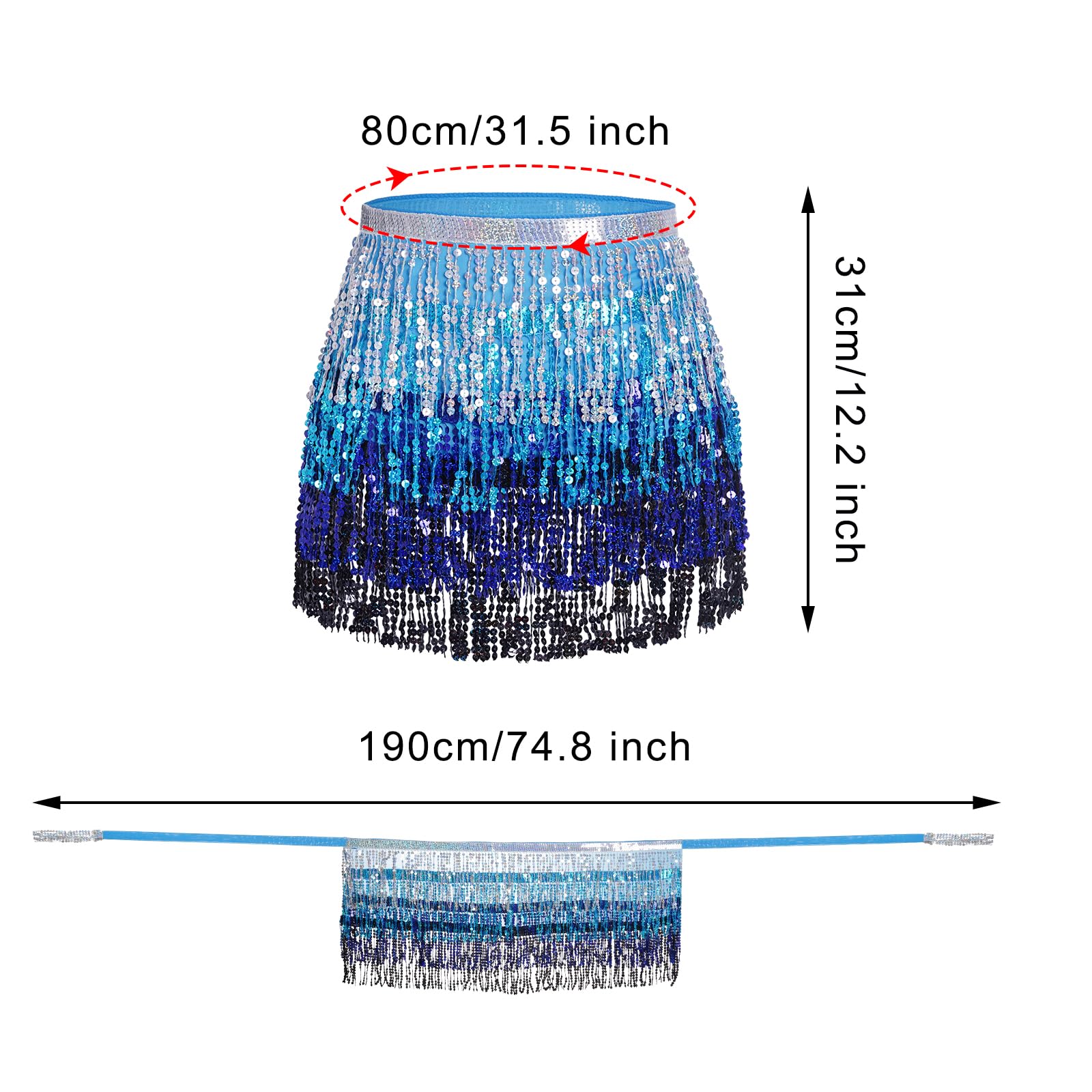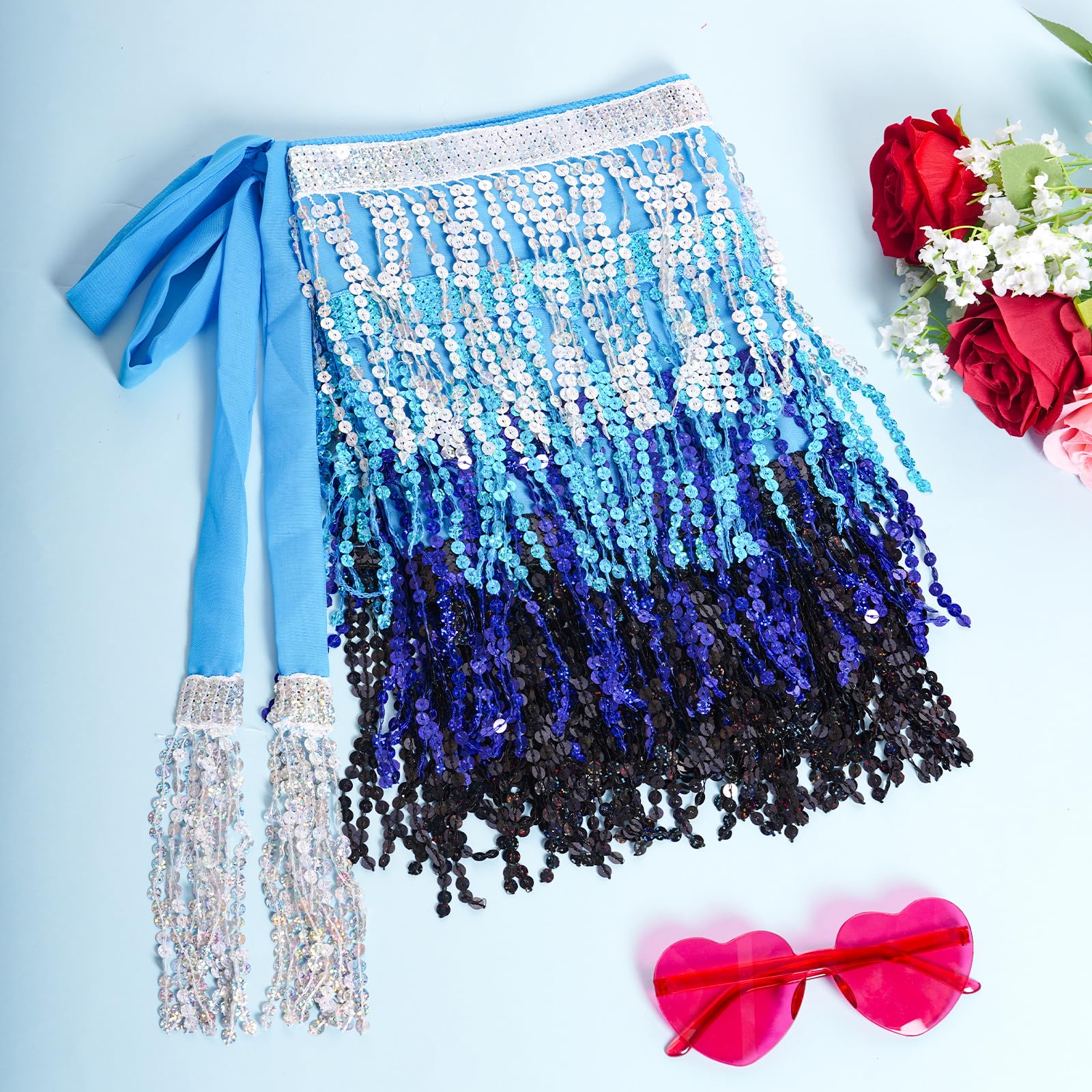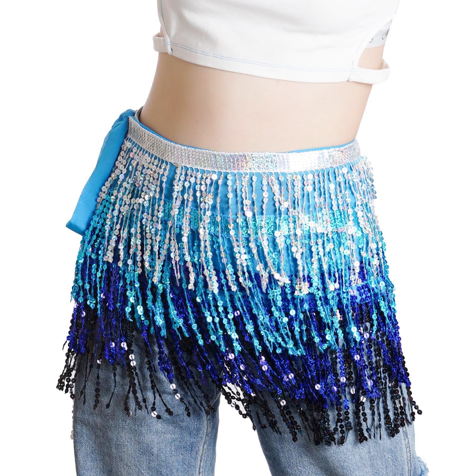 Exquisite Design: This fringe hip scarf has various strands of sequins, reflect any light that shines on its surface, unique and gorgeous, make you be the center of the crowd