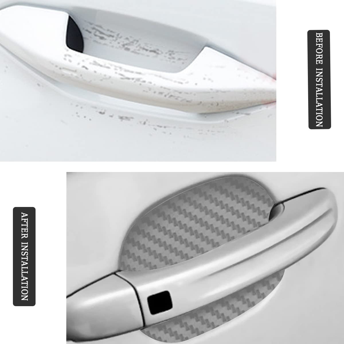 【High Quality Material】: Because of the high quality carbon fiber material with strong self adhesive, this handle sticker is soft and elastic, it is not easy to break or fade, it has a good performance in the extreme weather. It is waterproof and protect your vehicle in all seasons, wheather it is hot, cold or when you wash your car, it still works well.