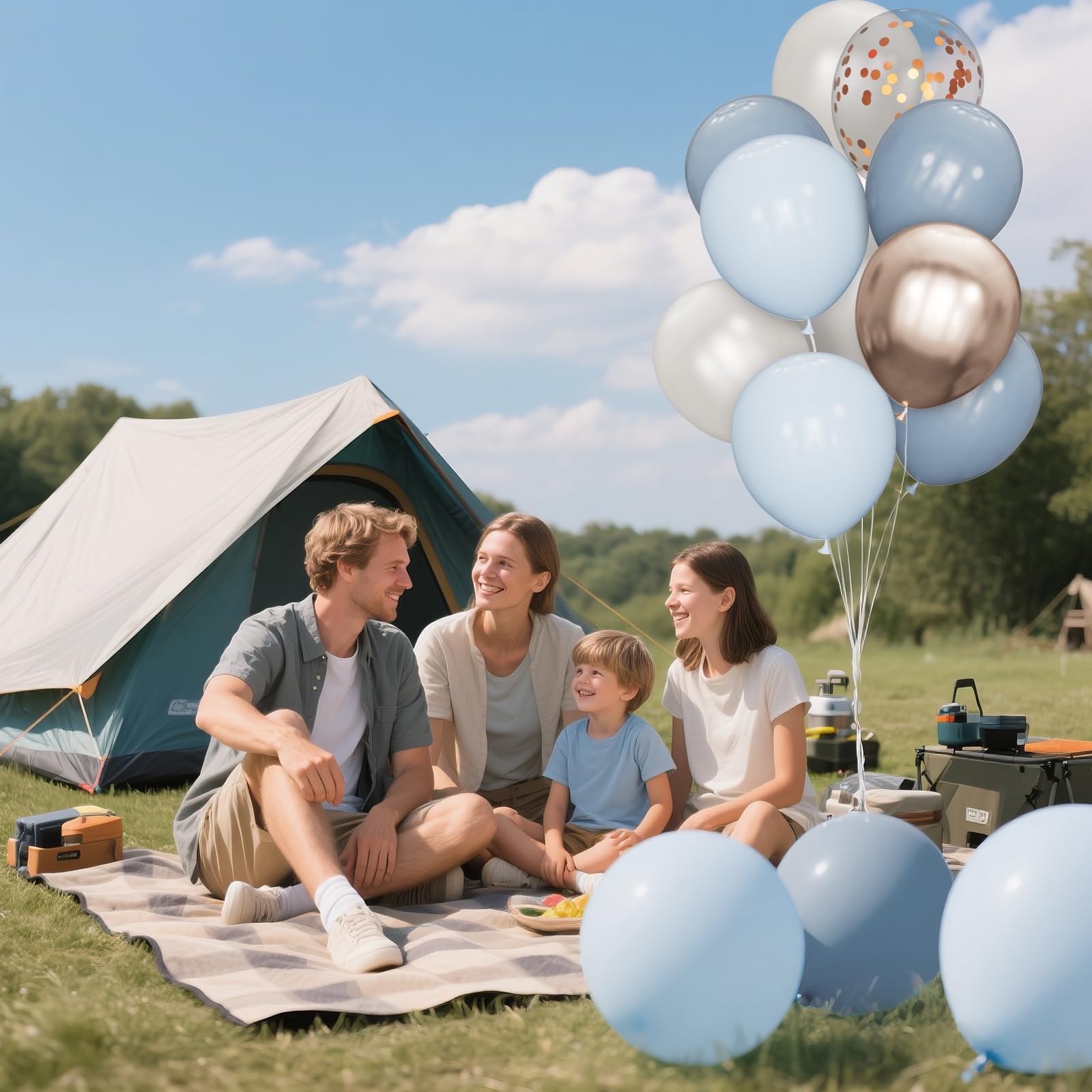 Product Description baby blue balloons dusty blue balloons Infuse your celebration with a sense of luxury! This set of gold and blue balloon kits, selected four highly Soft colors: hot pink, Confetti balloons are the finishing touch, making your party high-end and elegant. Why choose us? High-end material: thickened strong elastic latex, not easy to break and leak Durable suspension: can float continuously for 5-7 days after filling with helium (self-provided helium is required) Dual inflation plan: helium creates an aerial feast / ordinary air + ribbons create hanging decorations ▸ Engagement banquet/wedding: a sweet photo background wall ▸ Birthday party Baby 100-day banquet: childishness and luxury coexist ▸ Graduation ceremony: freeze youthful memories with color ▸ Anniversary: swaying sequins tell romantic time