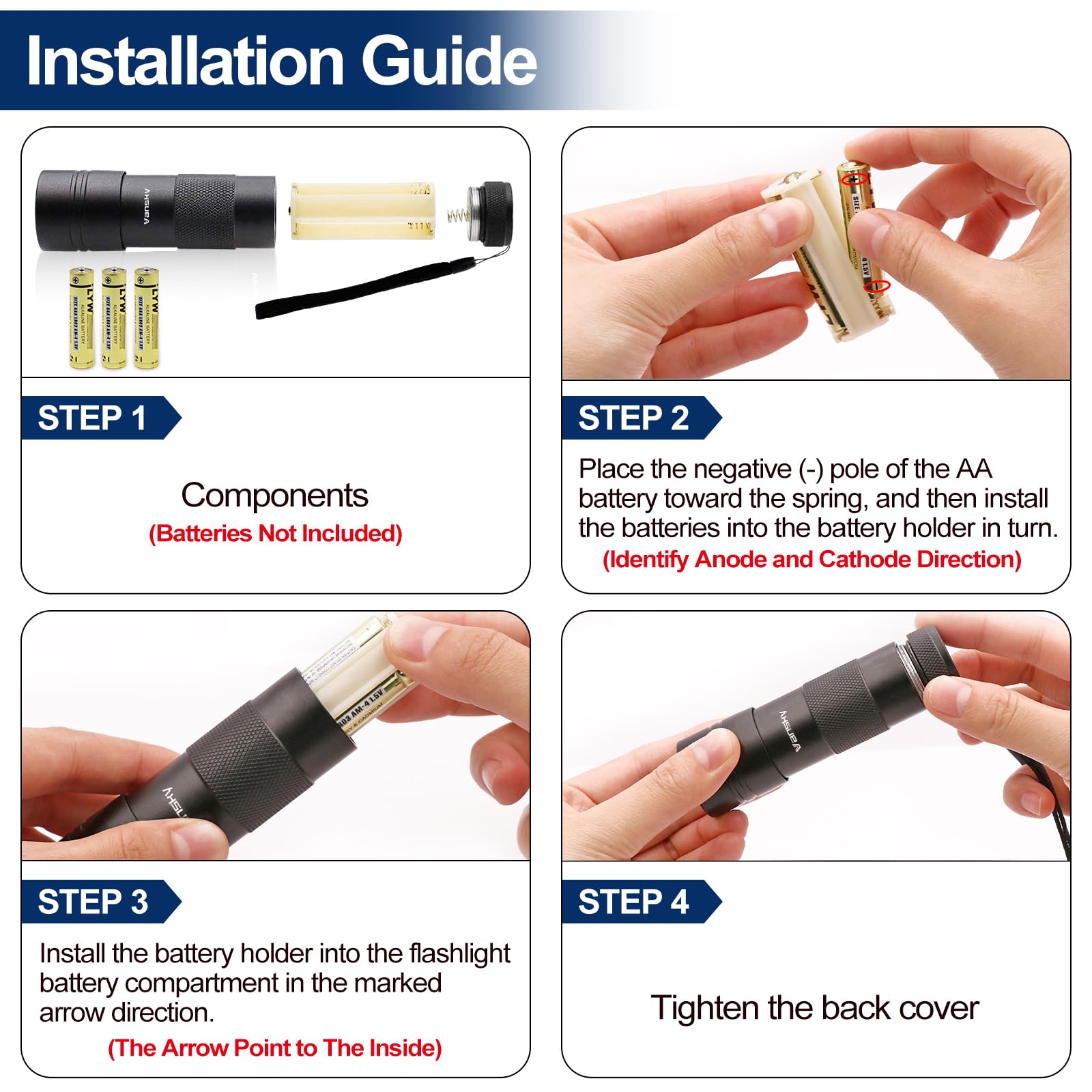 【What You Get】Easy-to-reach Support; Vansky UV Light Pet Urine & Stain Detector Blacklight Flashlight *2, Battery Holder *2, User Manual*1