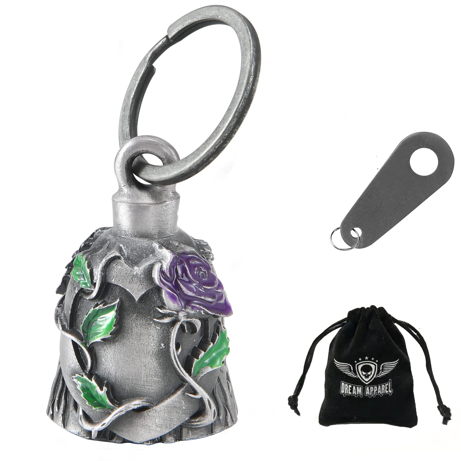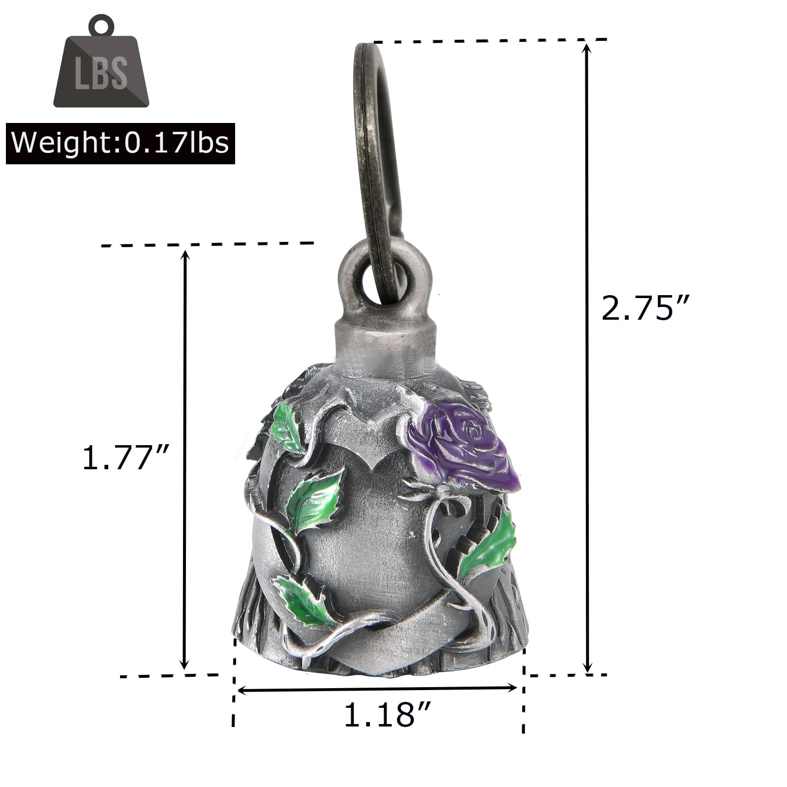 Large & Heavy:Each luck bell comes with 1 hanger+1 black gift bag+1 Legend of the Dream Apparel Bell story card,Measures: 2.75" tall ring include, 1.18"bottom wide. and weight 0.17lbs,heavy motorcycle bell keeps more sturdy while riding.