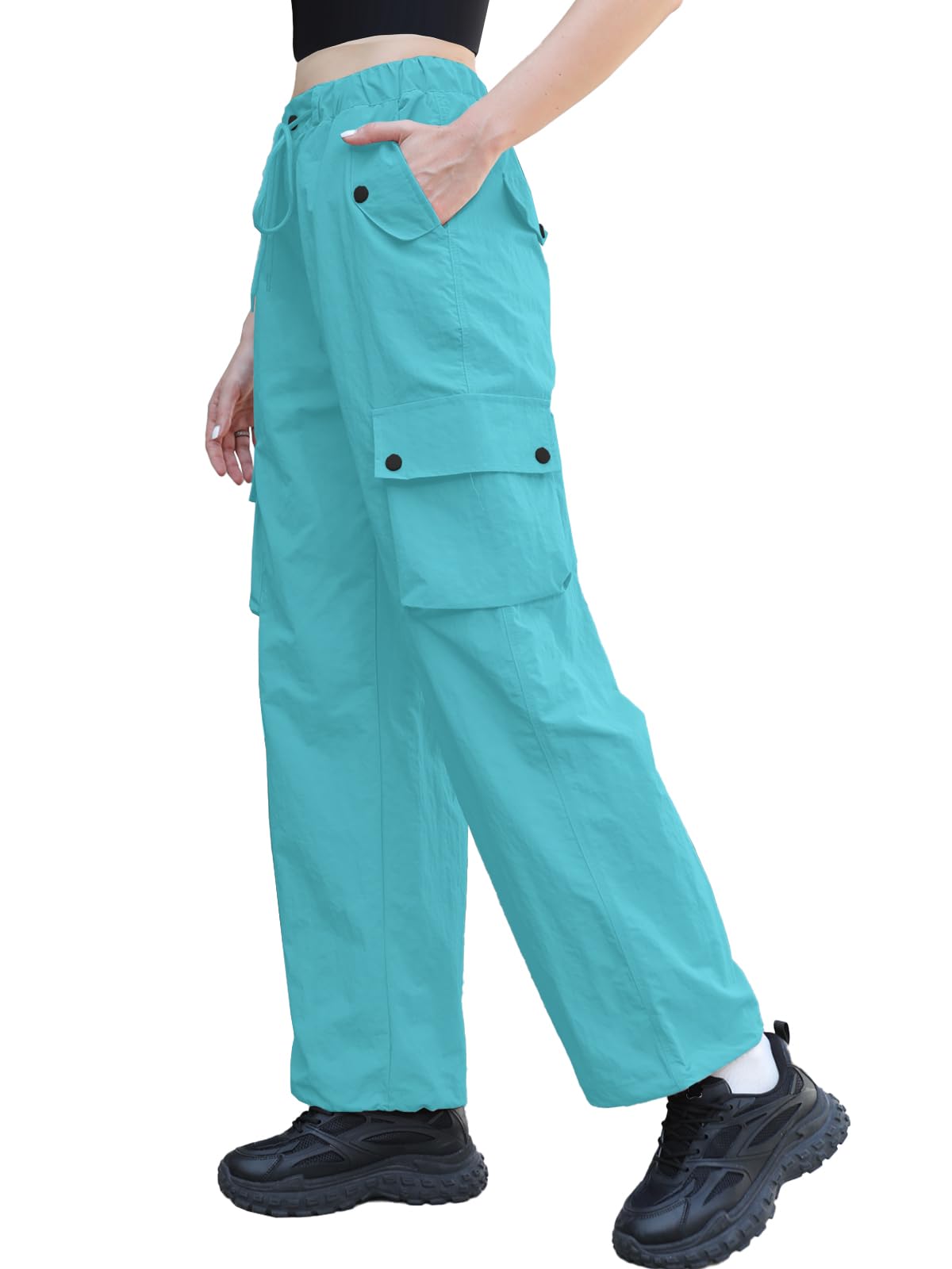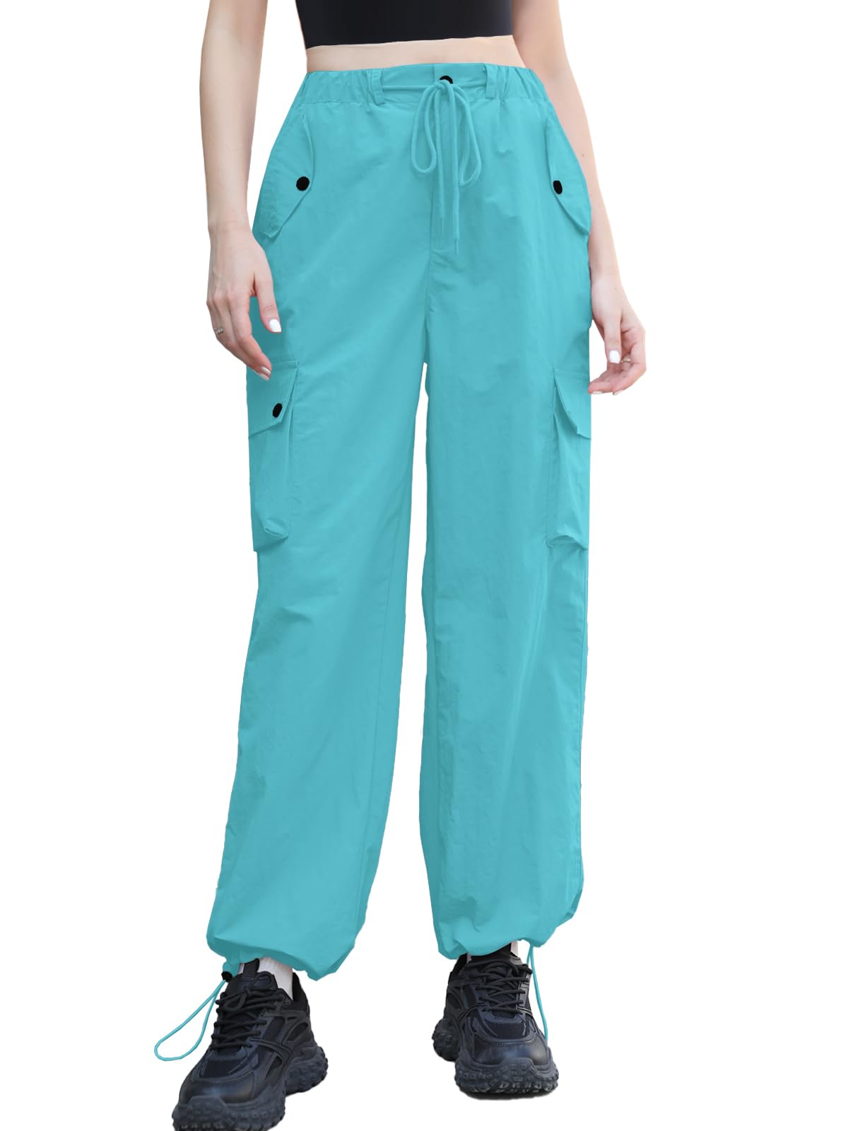 Material:Parachute pants designed for women and girls are crafted from lightweight, waterproof, and abrasion-resistant ripstop nylon fabric. Featuring a breathable design and an oversized silhouette, these pants incorporate essential Y2K aesthetics, expertly crafted to create a cool, edgy streetwear vibe.