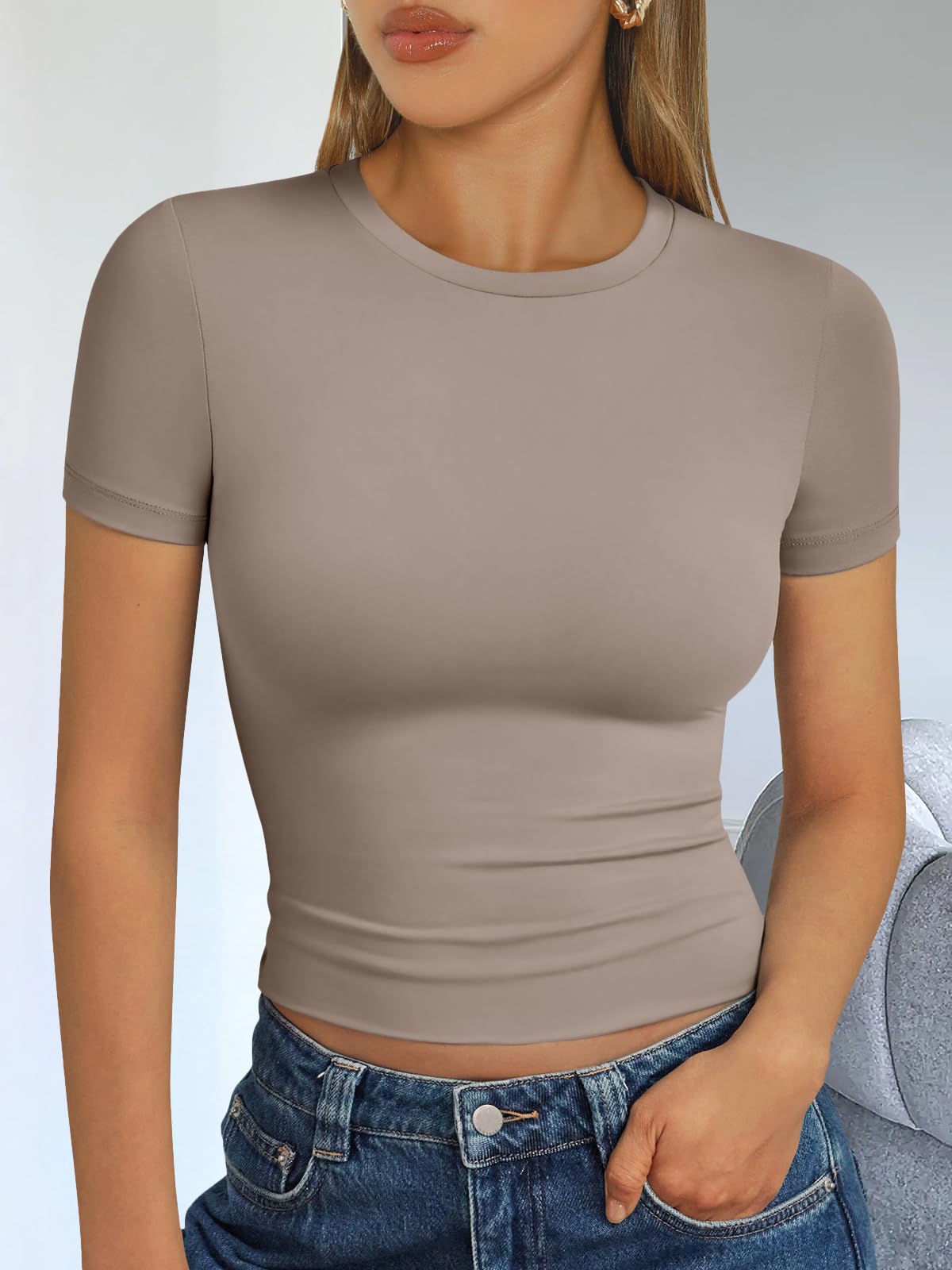 Design: Cropped and regular style,you can wear it regularly or fold it up like a crop top.cute,slim fitted,casual style,scoop neck,short sleeve