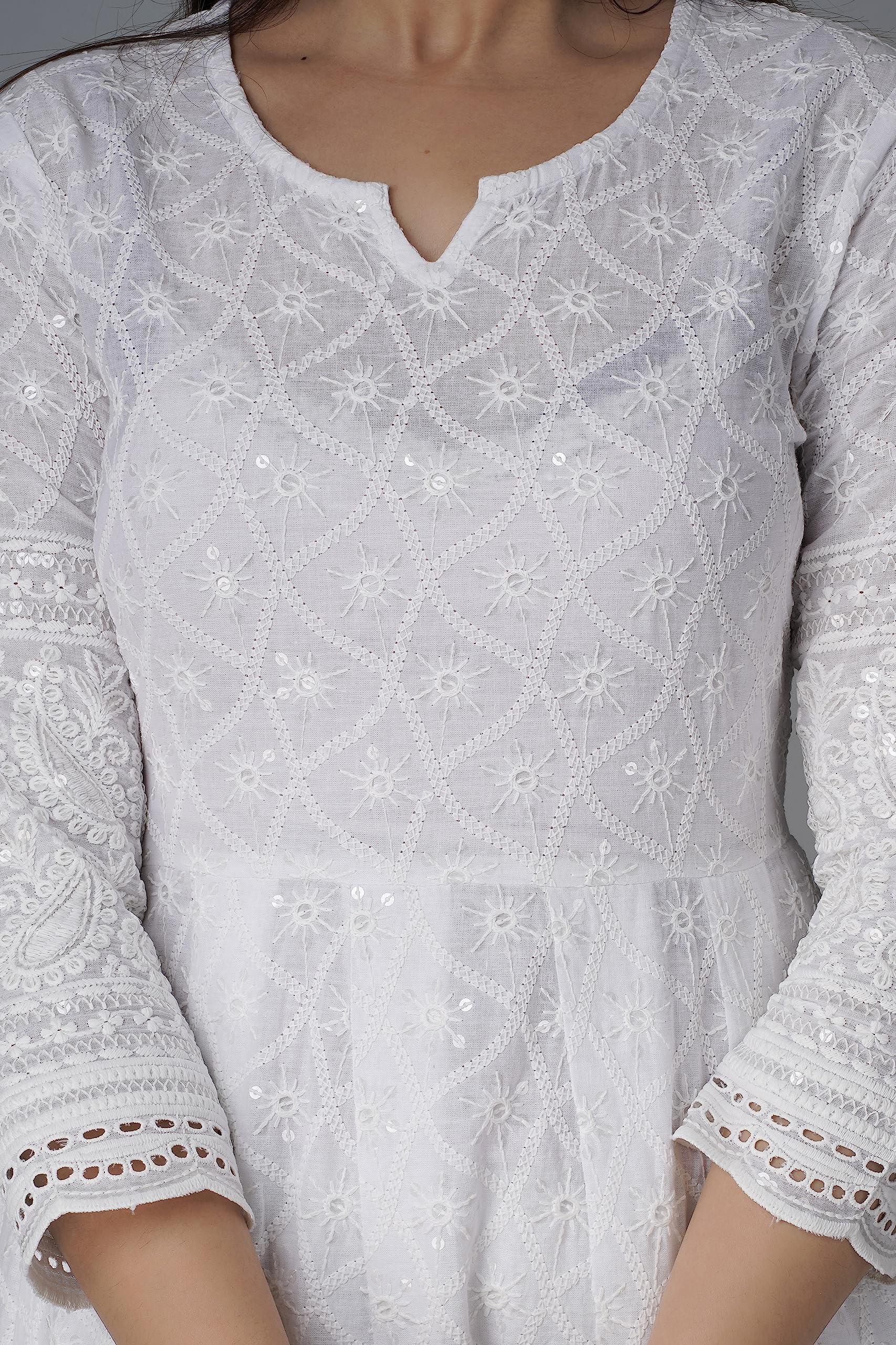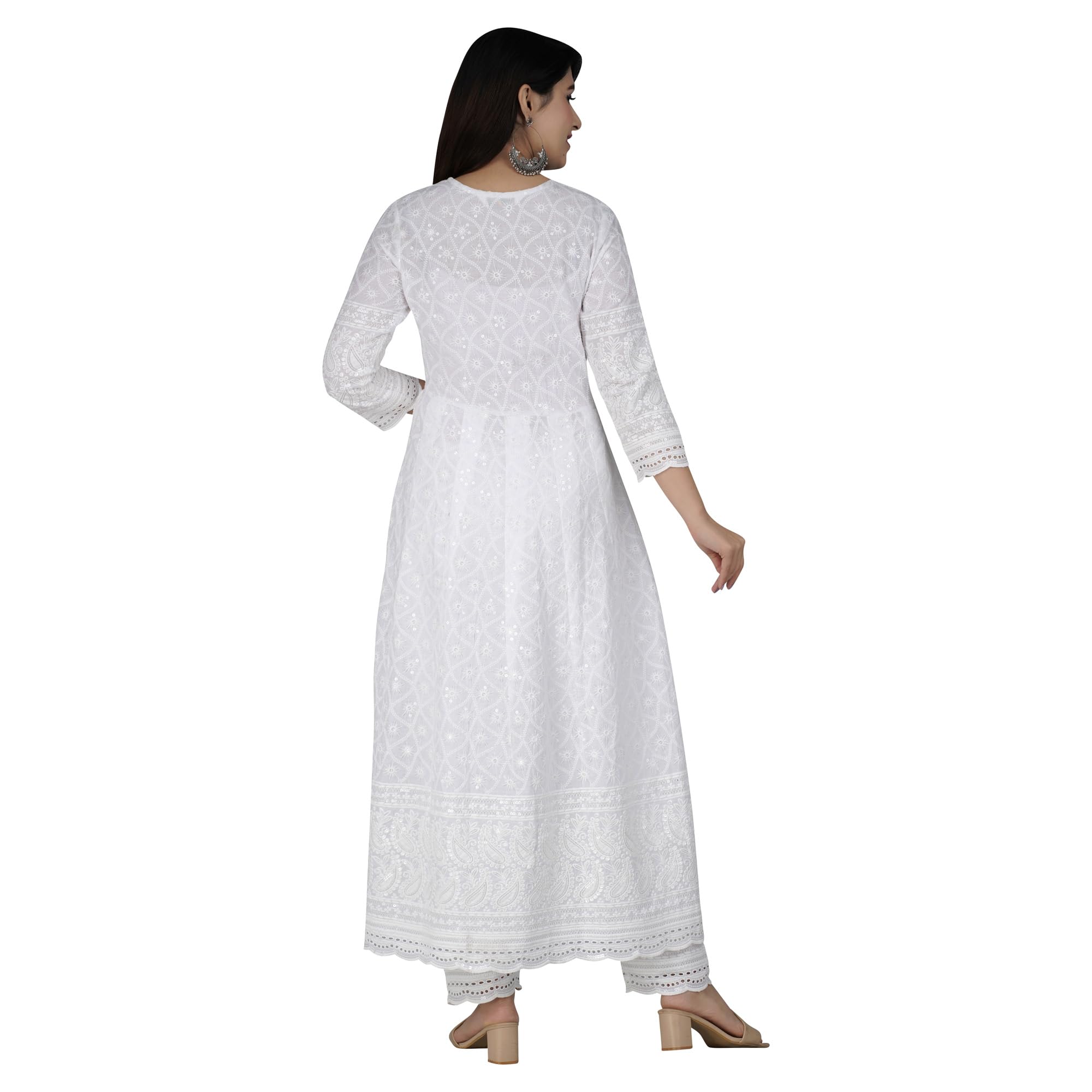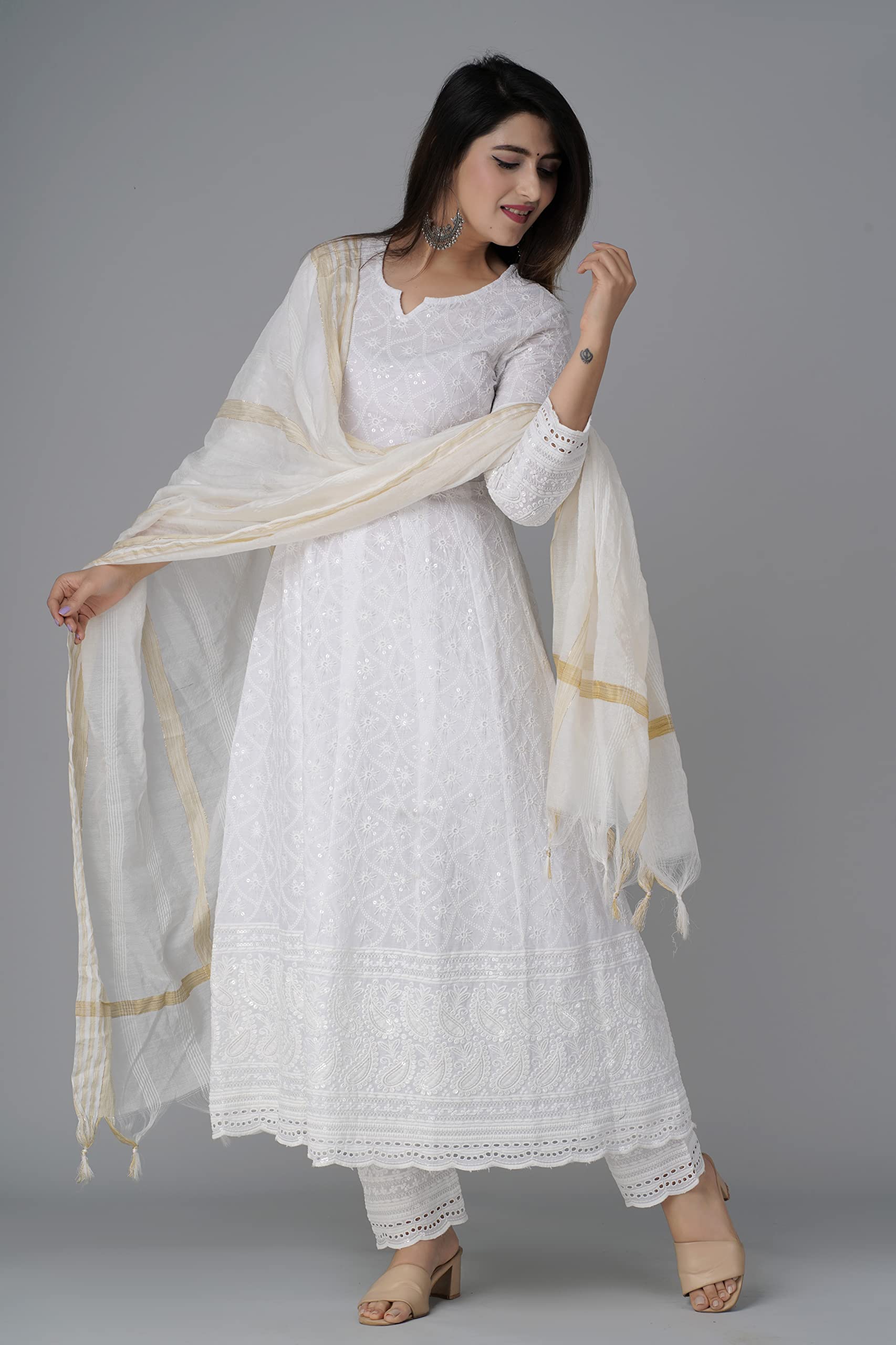 Indian Stylist Anarkali Cotton Lucknow chikankari Kurta Pant & Dupatta Set Indian Ethnic Dress for Women Pure Cotton White Kurti for Women's
