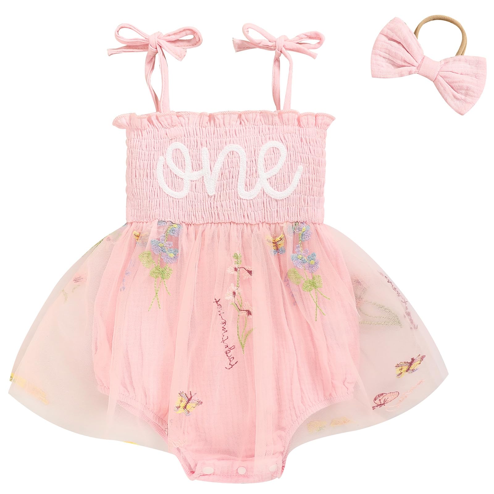 Design: Newborn baby girl playwear romper dress with sleeveless, solid color, multi-layered tulle, Snap leg openings for easy diaper changes, easier morning for novice mother.Cute princess 1st birthday outfit, fashionable and adorable embroidery ONE printed themed birthday clothes perfect for creating beautiful memory of her first birthday.