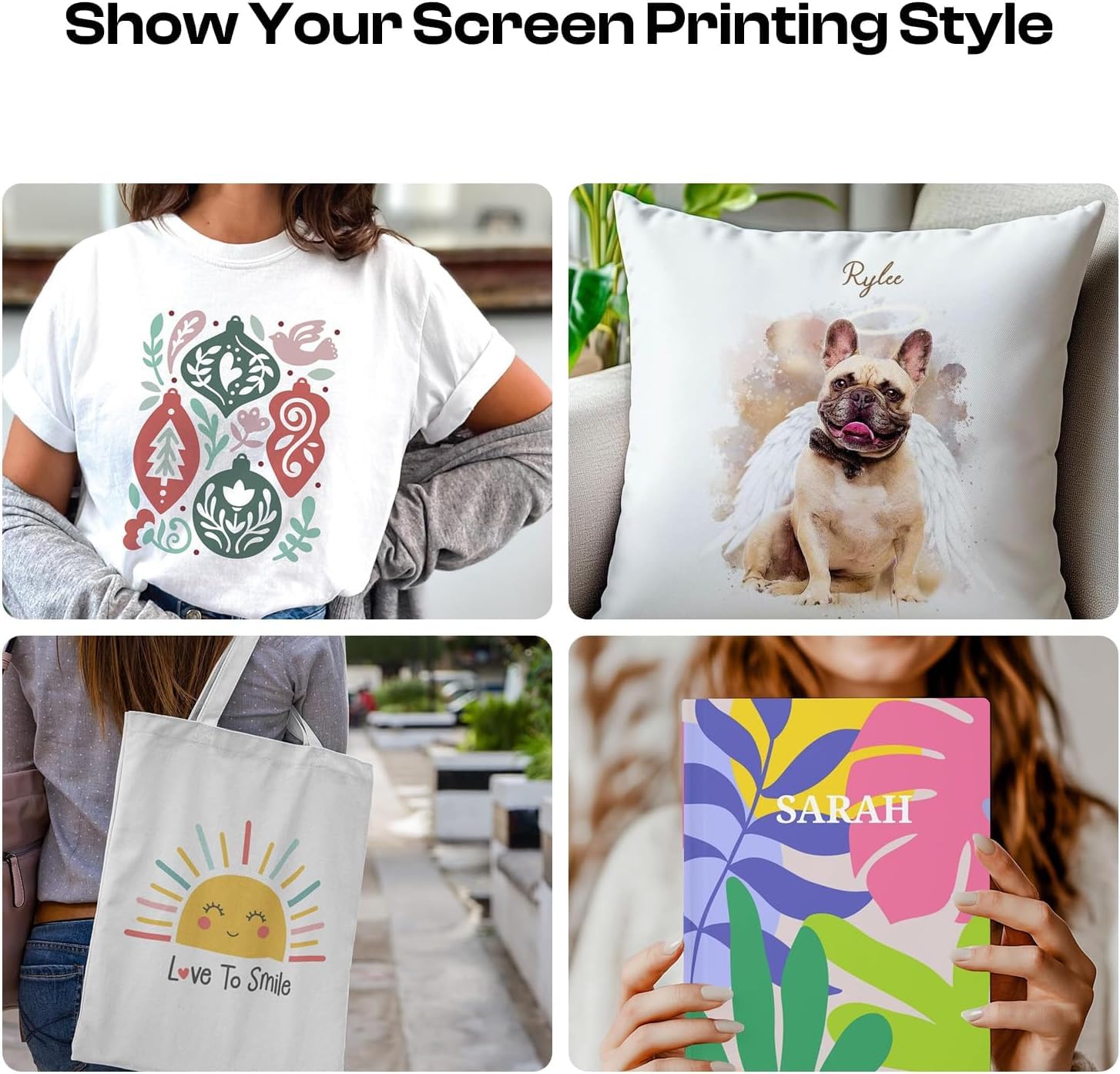 Wide Applications: Our screen print screen and silk screen squeegee are versatile, suitable not only for screen printing on various textiles such as T-shirts, canvas bags, and vests, but also for graphic design, paper printing, and advertising printing, allowing you to easily handle diverse creative scenarios