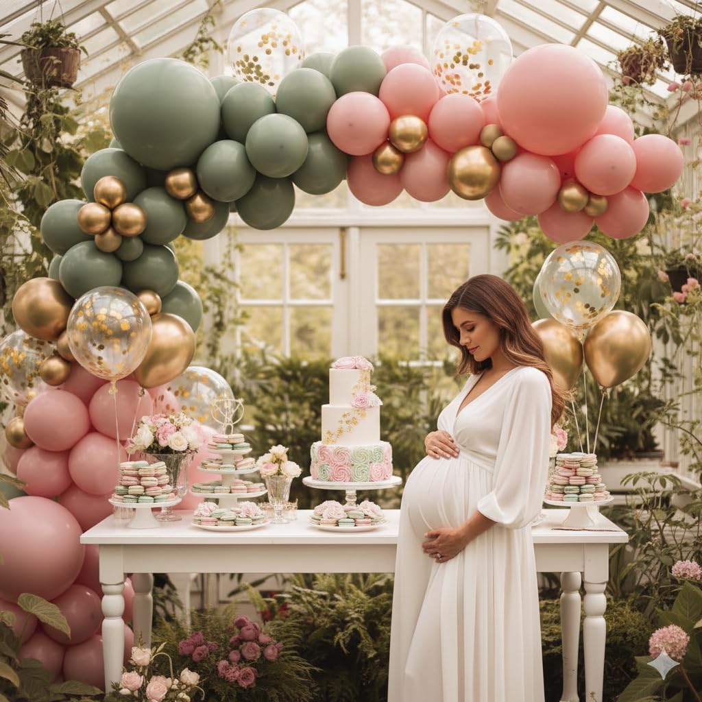 🎉 Easy to Use - The olive green and dusty pink gold balloons support both air and helium. You can blow them up with a mouth, pump or helium. After inflating, shake the confetti balloon and gently rub it with your hair or dry fabric to make the confetti stick to the side of the balloon, which can make the balloon look more beautiful. When the party is over, you can pop the balloons to let the confetti fall, adding fun to the party.