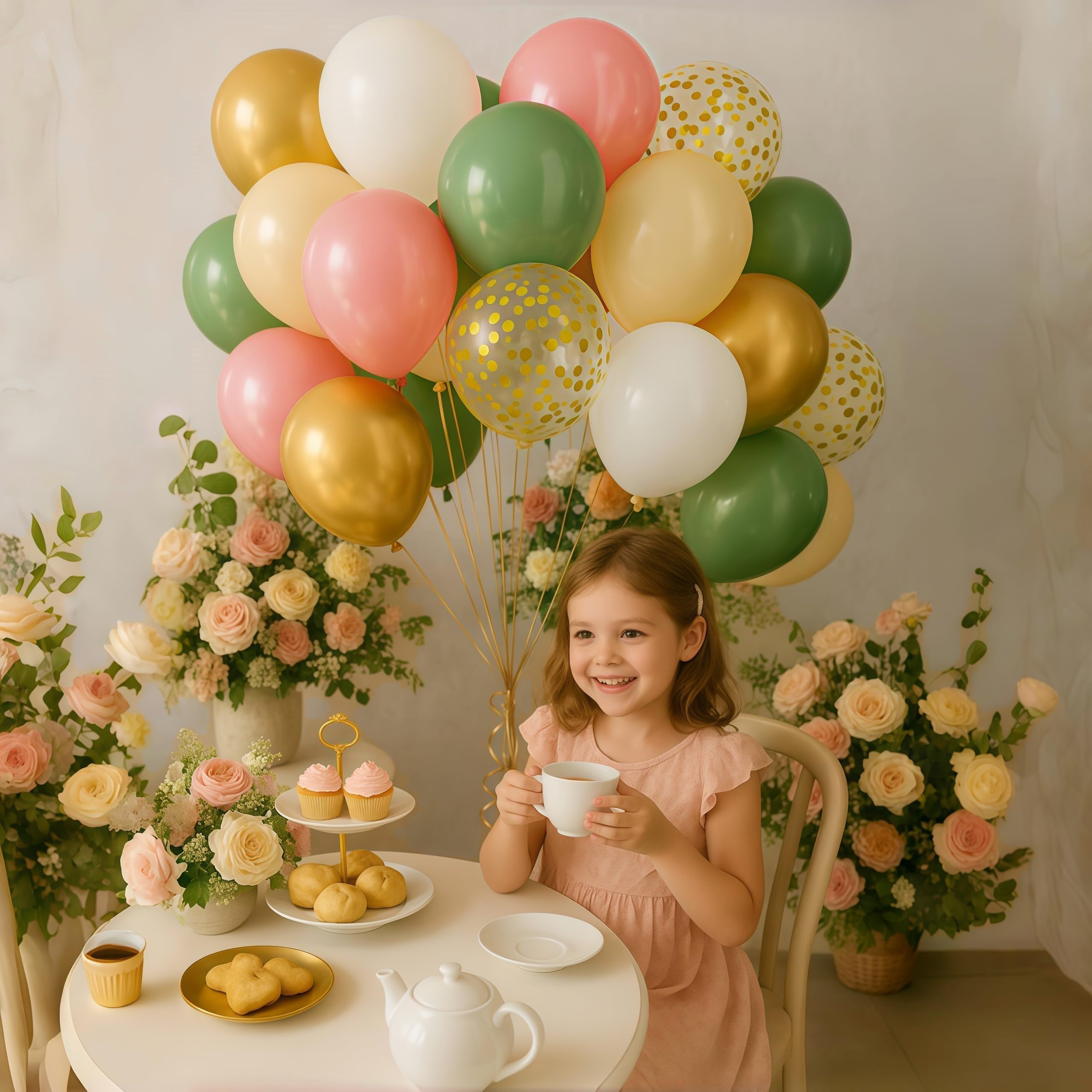 🎉 Premium & Durable Material - The retro sage green pink gold balloon kit is made of high quality 100% natural latex, thick thick and long-lasting, not easy to burst, every balloon has been rigorously tested and selected manually, safe for children. They can be filled with air or helium, suggested use with a balloon pump.
